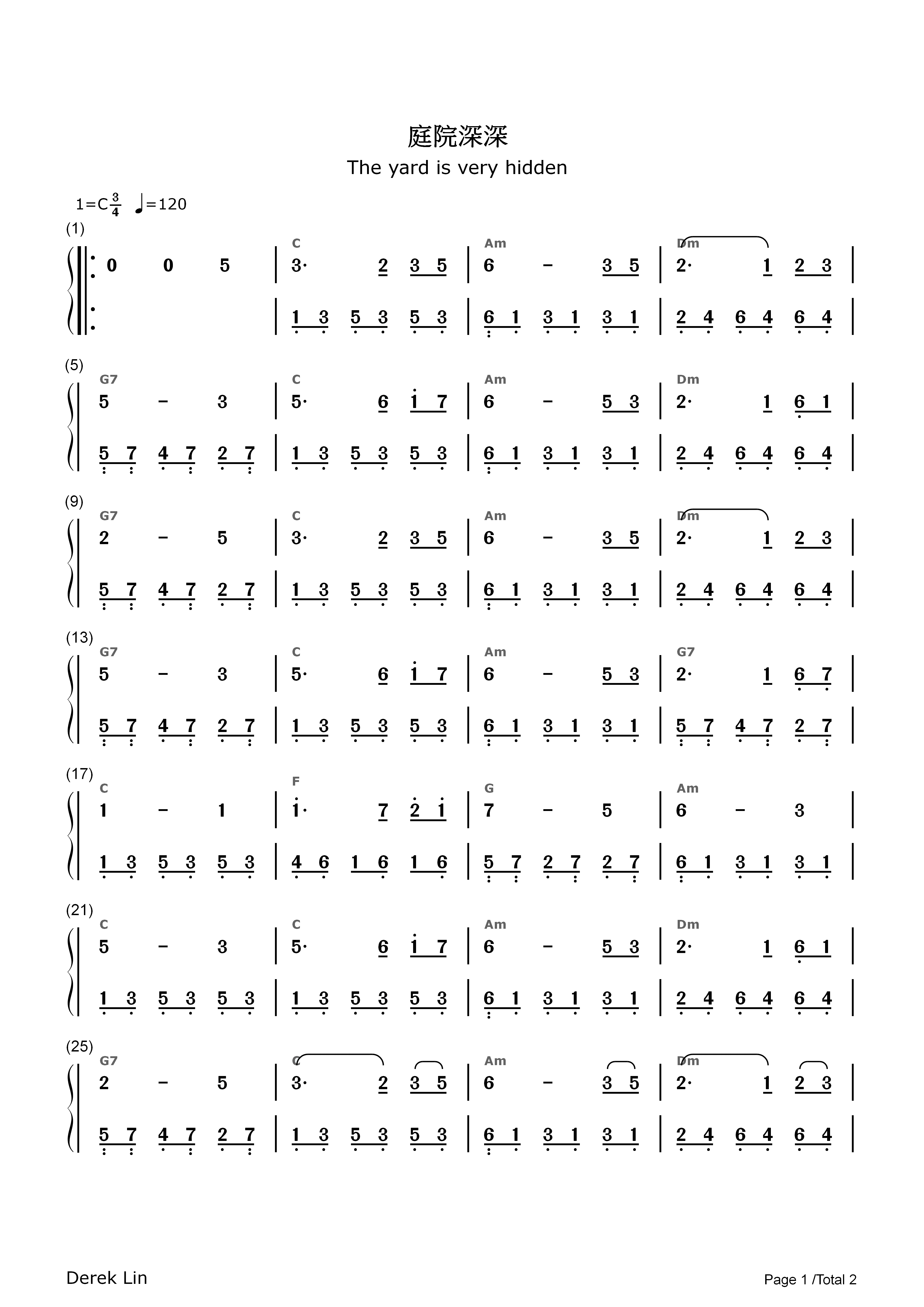 庭院深深 簡譜(點樂譜開演奏連結)
