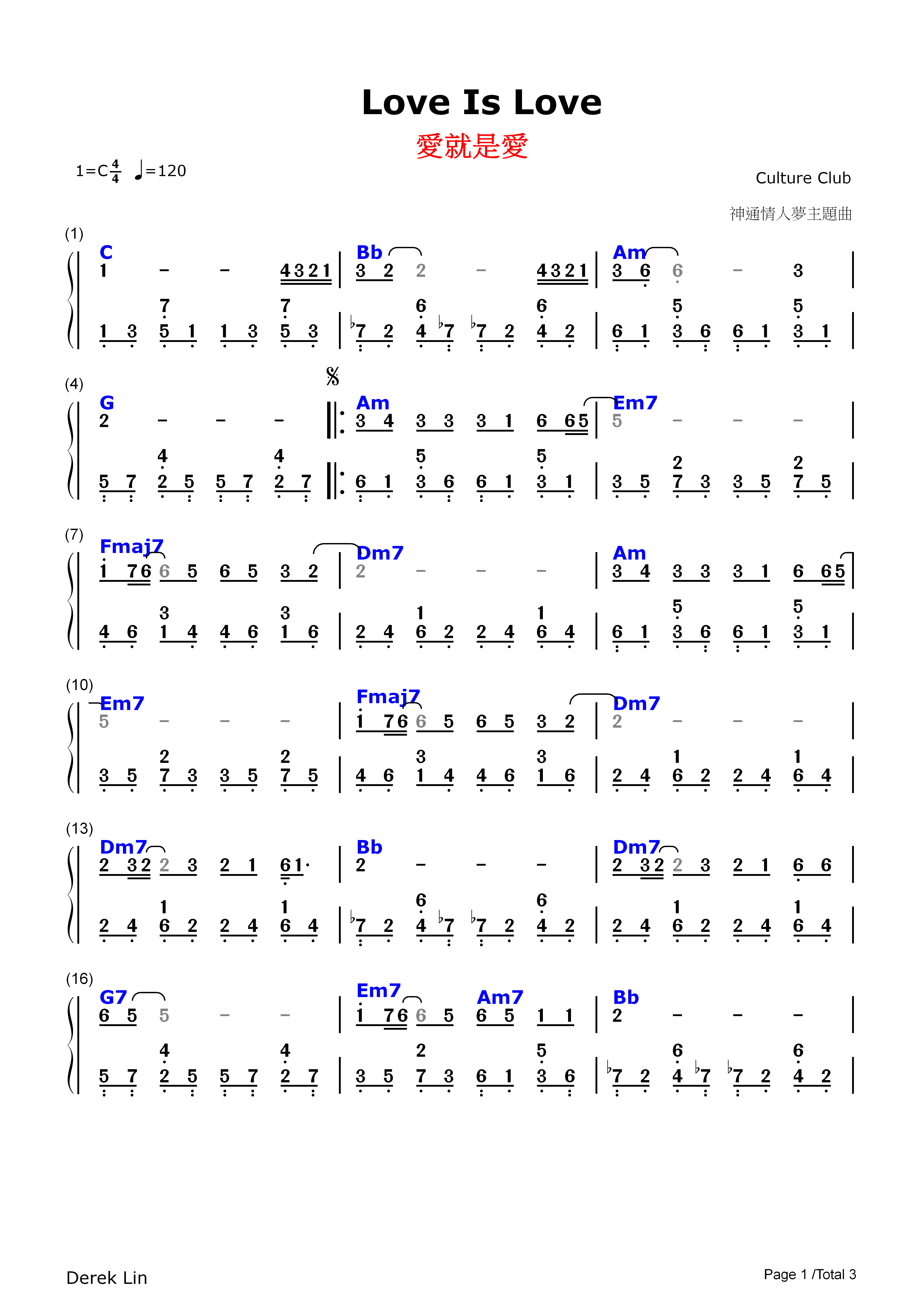 Love Is Love 簡譜