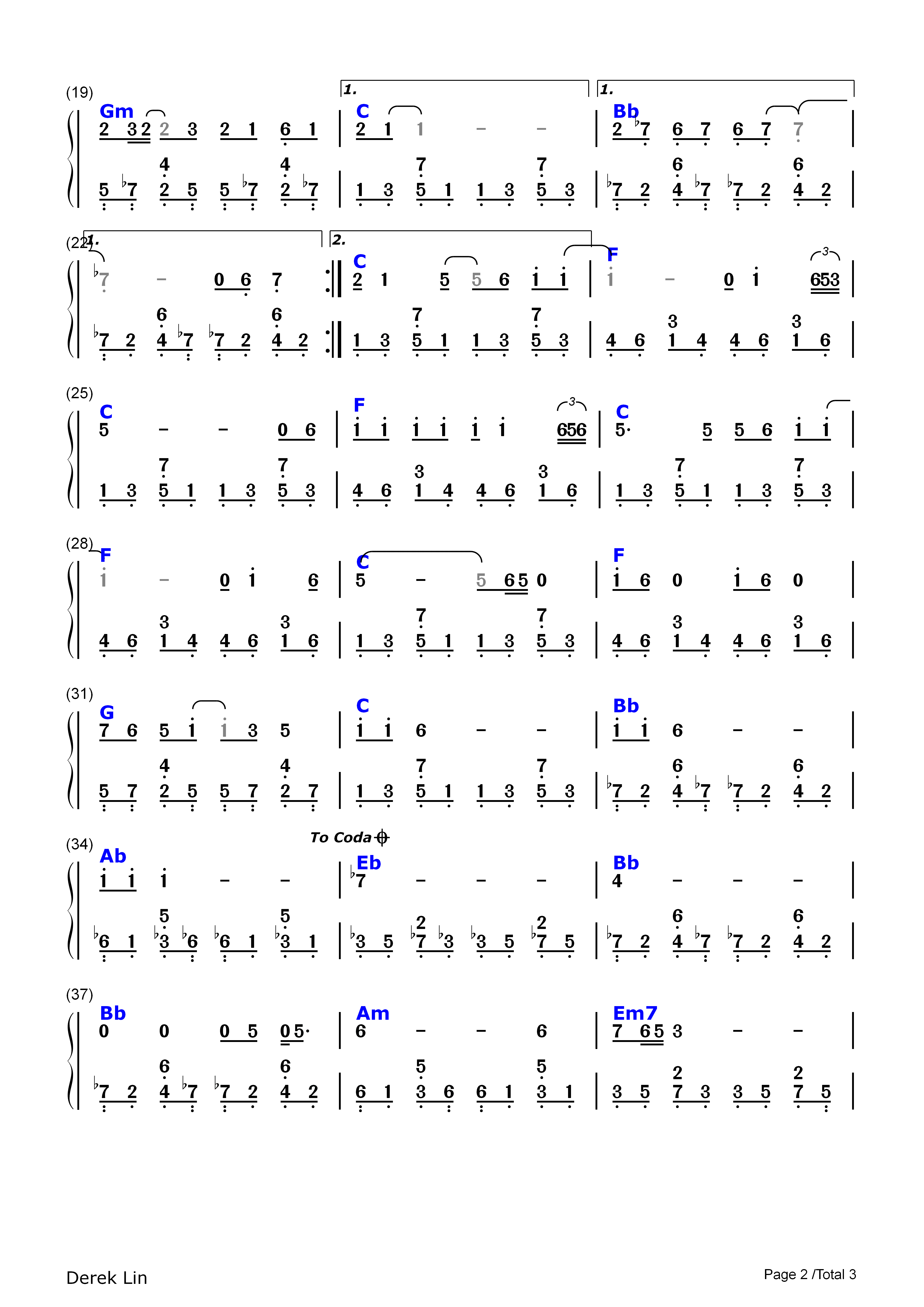 豎琴 簡譜
