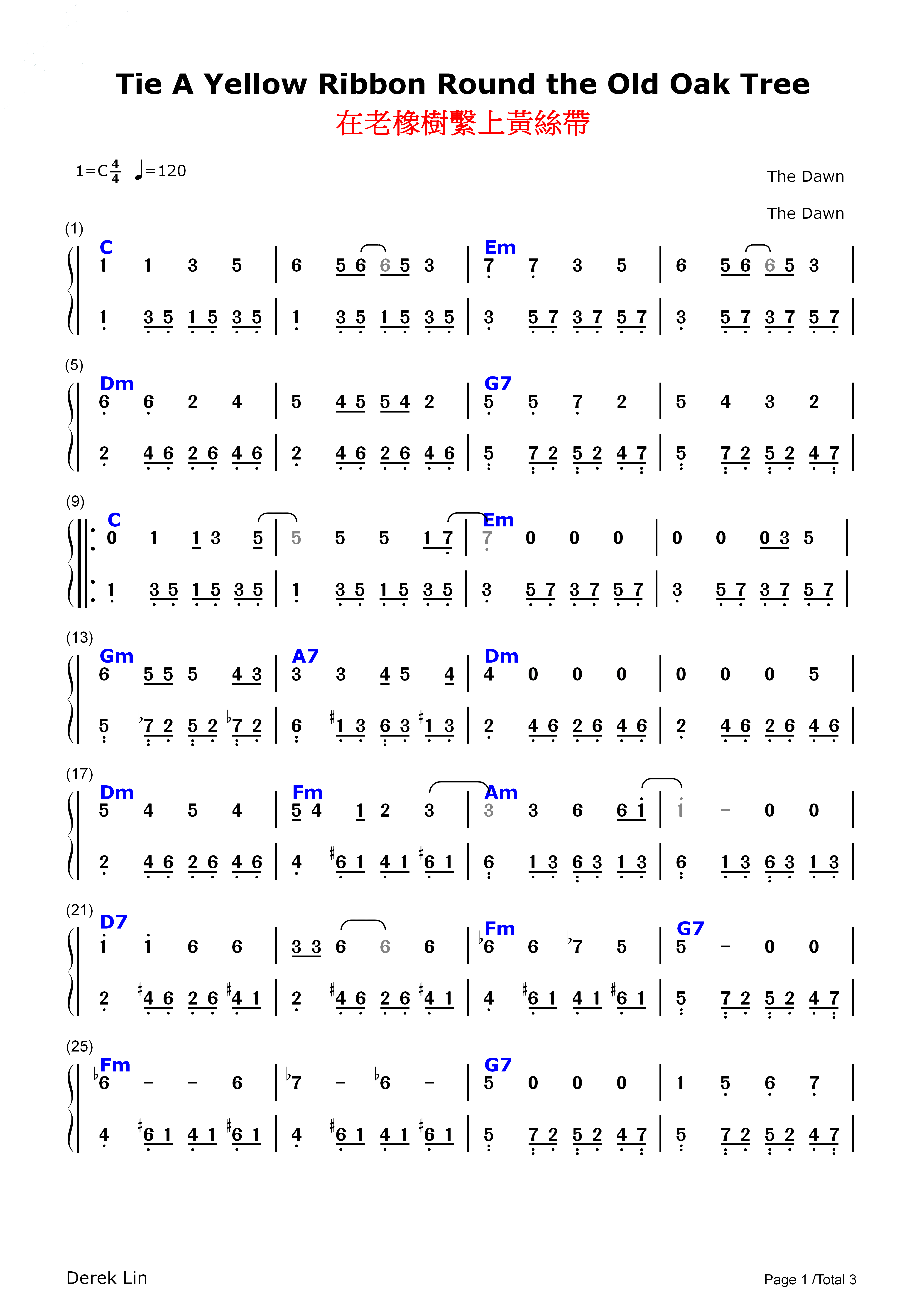 Tie A Yellow Ribbon Round the Old Oak Tree 簡譜