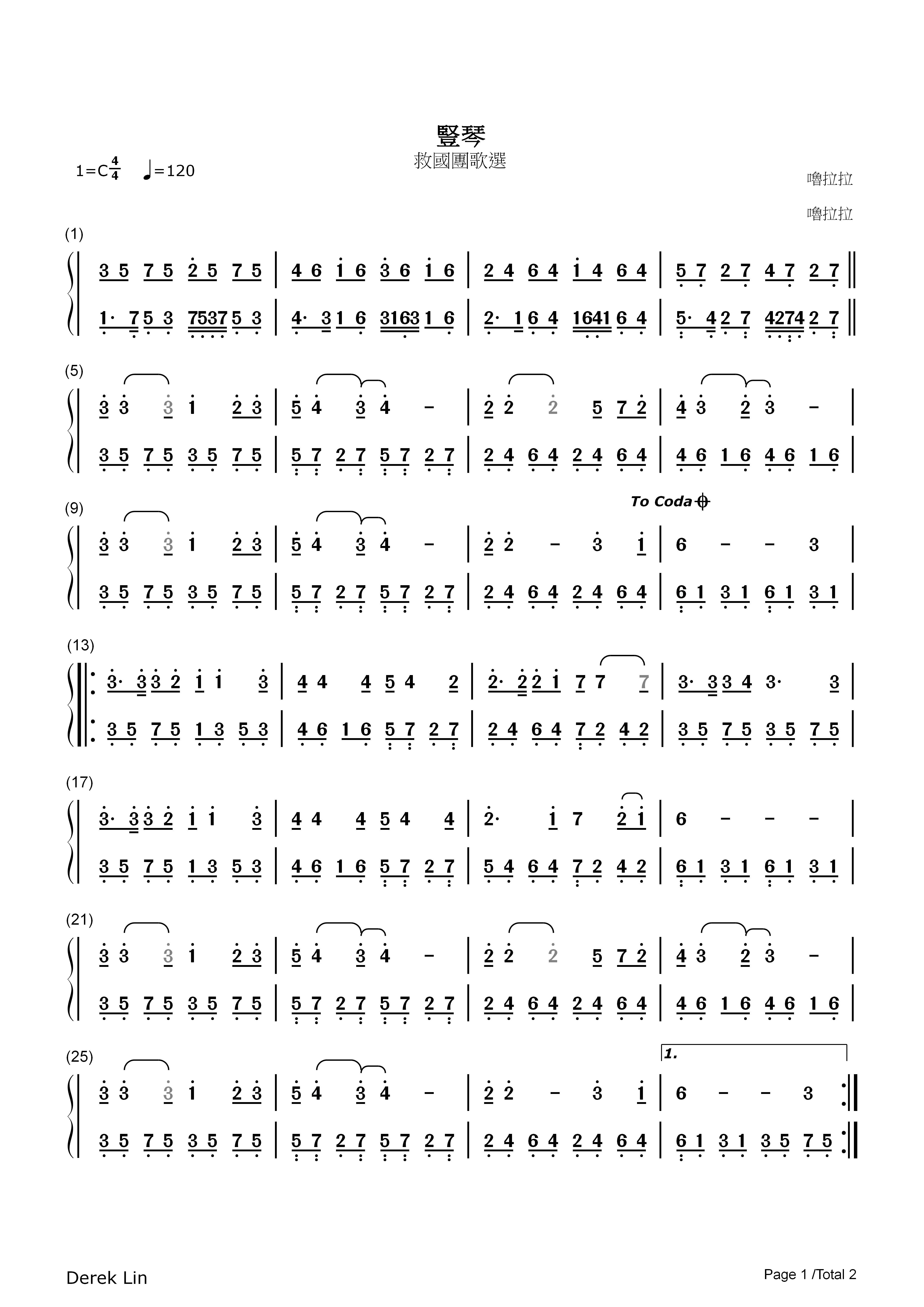 豎琴 簡譜