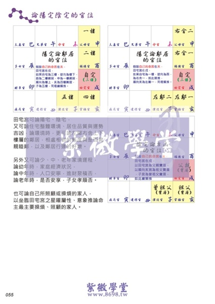 而財帛宮、官祿宮、遷移宮、疾厄宮,則多屬於『事』,雖然同樣也有『物』意象存在,