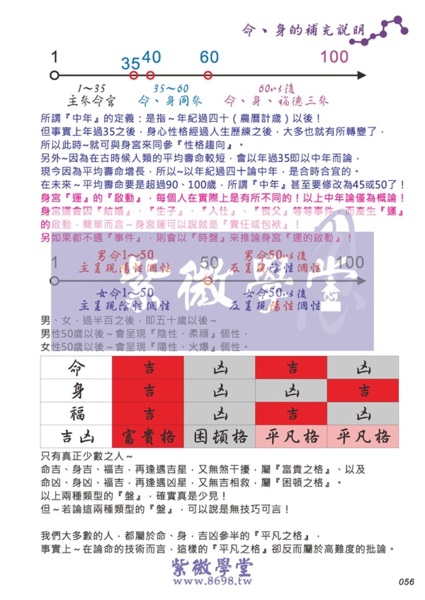在紫微斗數的學習原則上,我們將『命』『身』『福』看得很緊、很重要,這是沒錯的!但是會造成『絕對的結果』嗎?肯定不會的!如果答案是肯定的話,我想人生就不會有那麼多疑惑不解!如果那麼肯定、那麼簡單,以現在科技那麼進步把出生年月日時輸入後,電腦就把『你的人生劇本』定格了!即使不用電腦,翻書查命格也把『命運之歌』定調了,那人生還有什麼好玩的?注意啊!命運是一個詞,卻是兩件事~『命』『運』!以下例圖說解釋,只是將『命格』定位而已,是人生的絕對嗎?未必!別忘了~還有『運』!http://www.8698.tw/bit0042.html
