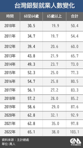 陳思緯老師的提醒: 根據主計總處調查,2022年銀髮就業者人數衝上103.1萬人,占整體就業人數比重進逼1成;勞動部指出,近年可觀察到企業觀念逐漸改變,進用中高齡者補足人力的意願有上升趨勢。