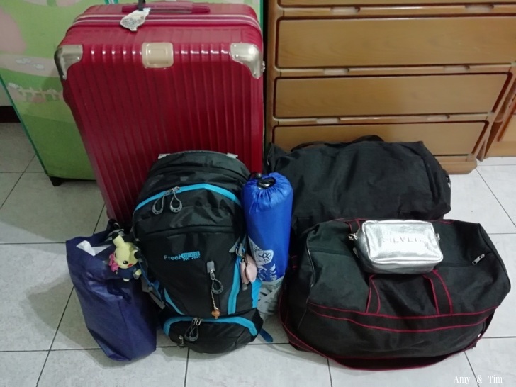 今年一個人扛55公斤行李,超重了。只好把多餘的物資往身上塞,沒辦法。