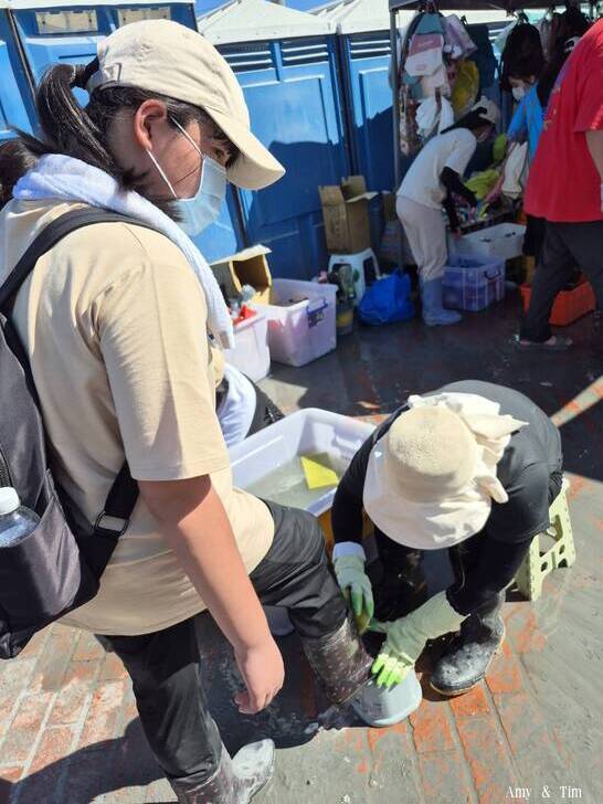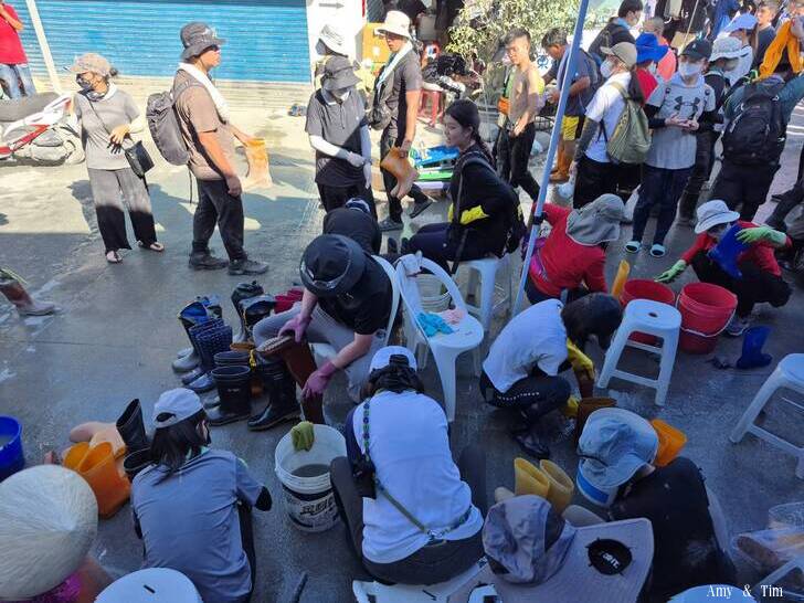 謝謝辛苦的志工幫忙清洗每一位志工的雨鞋,感恩 台灣人的大愛和溫暖,讓我感動到掉淚。