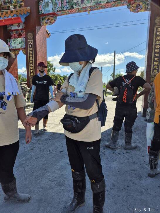 光復車站發心的志工幫忙消毒雨鞋給下一位志工使用 ~謝謝媽祖婆的午餐和慈濟的晚餐~ ~謝謝台南議員發起的鏟子超人光復救災專車~ ~謝謝全台灣到光復幫忙的所有志工~