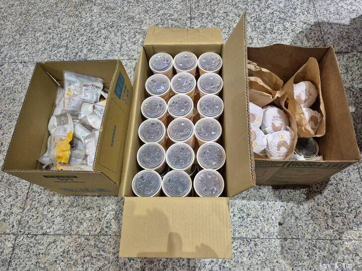 中午時間真的累趴了 貨車載人的、分物資的、洗雨鞋的、發便當的、