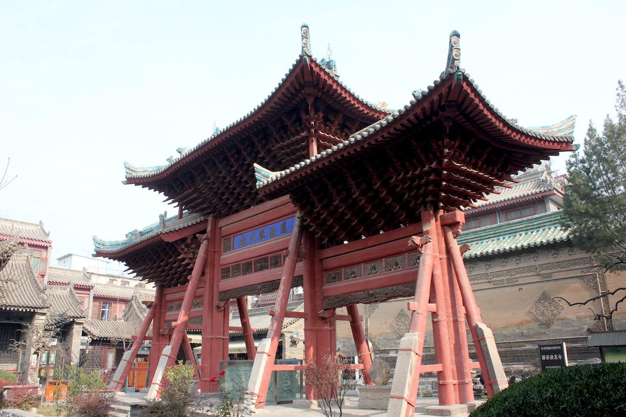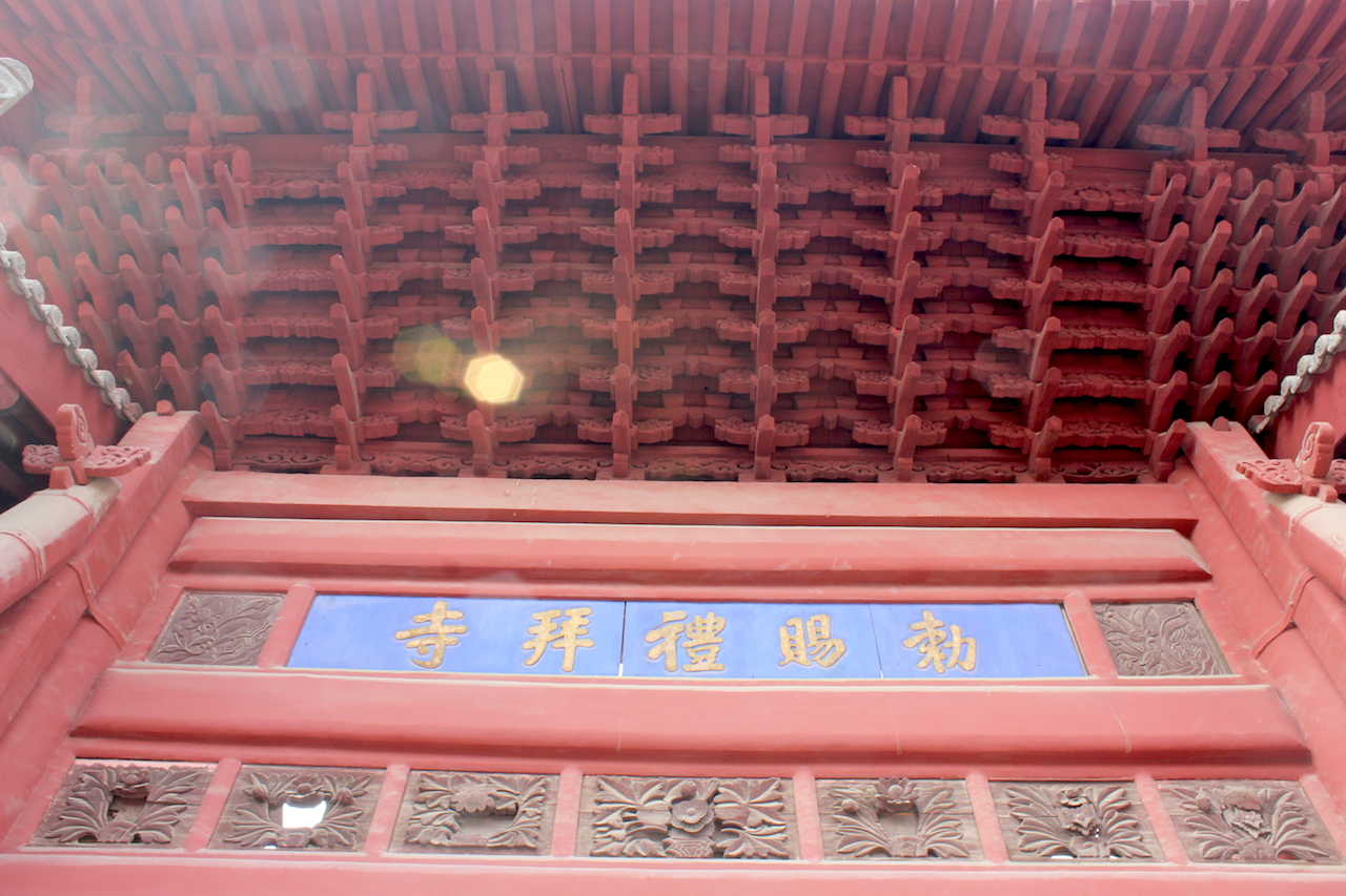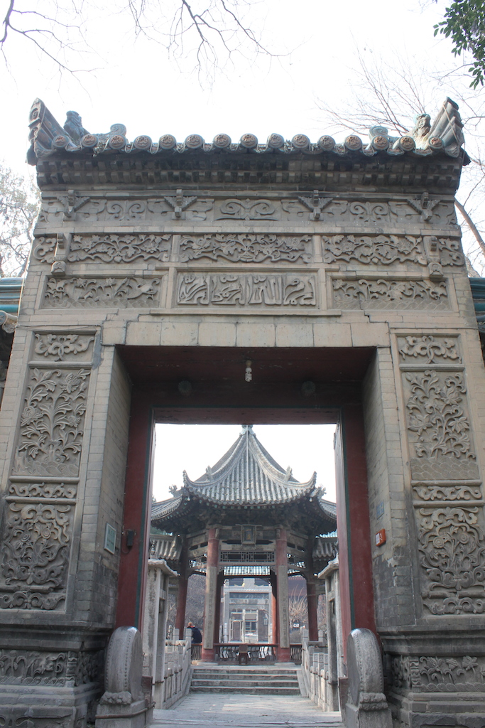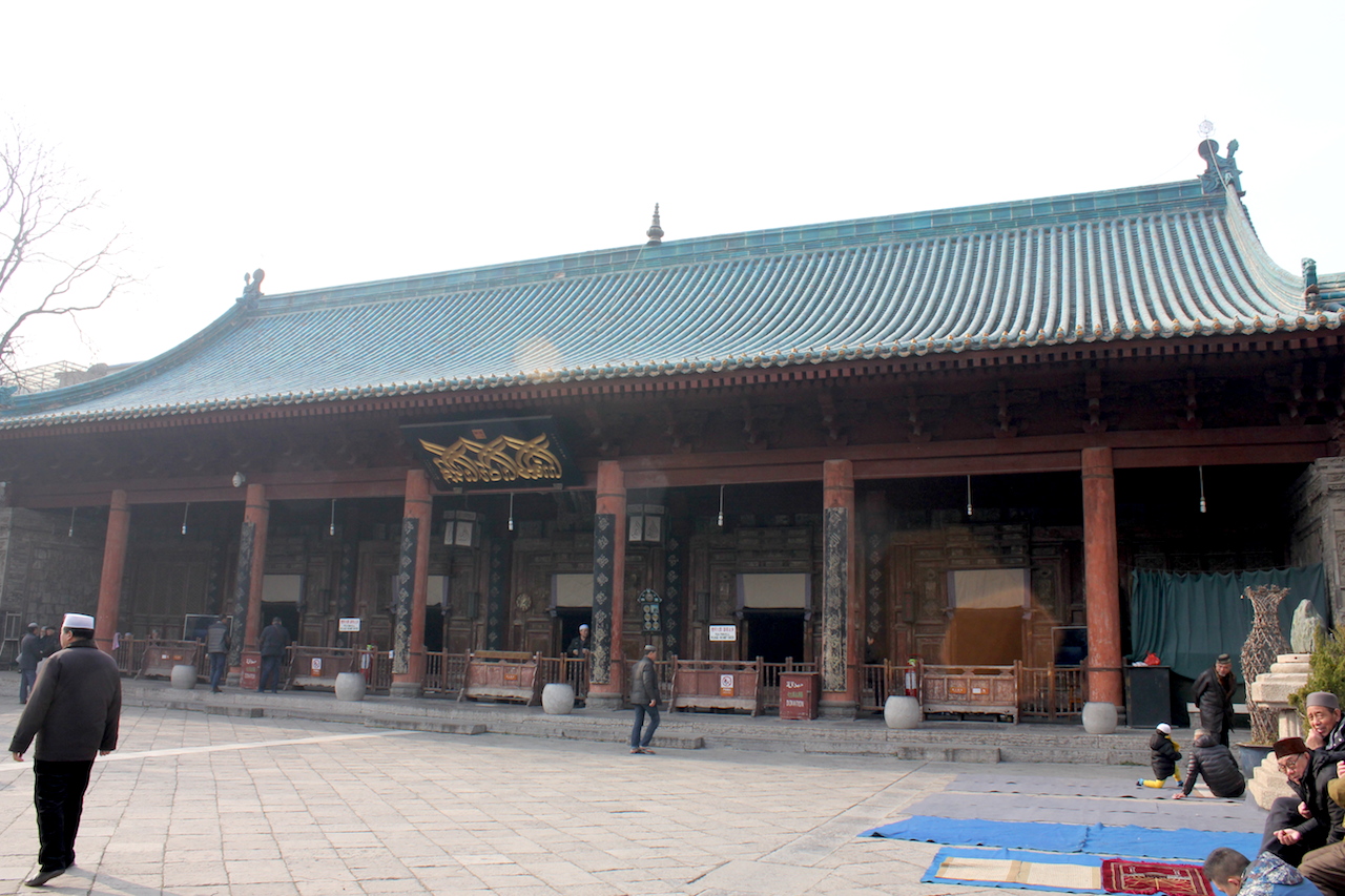 彷彿一座皇親貴族的府邸,踏入清真大寺,莊嚴肅穆的氛圍。全寺院沿東西走向,呈長方形,共分四進院落。從正門的木牌坊進入、穿越五間樓、通過明石碑坊、繞過宣禮樓、一路到鳳凰亭後、即可以看到單檐歇山的禮拜大殿。南北兩邊,各有展廳、講經堂、敕賜殿。 朱色的木質大牌坊,建於17世紀,矗立在磚雕照壁的對面,異角飛檐、斗拱層疊,普遍上都會出現在中國的寺廟。 中央矗立石碑坊一座,為三間四柱式,中楣鐫刻“天監在兹”,兩翼各為“虔誠省禮”和“欽翼昭事”,乃建於明朝。石碑坊後面南北兩側,各矗立“沖天雕龍碑”一通,一為明萬曆三十四年“敕賜重修清真寺”碑,碑陰鐫刻宋米芾手書“道法參天地”五個大字;一為清乾隆三十三年“敕修清真寺”碑,碑陰鐫刻明天啟年間禮部侍郎董其昌手書“敕修禮拜寺”,五個大字。