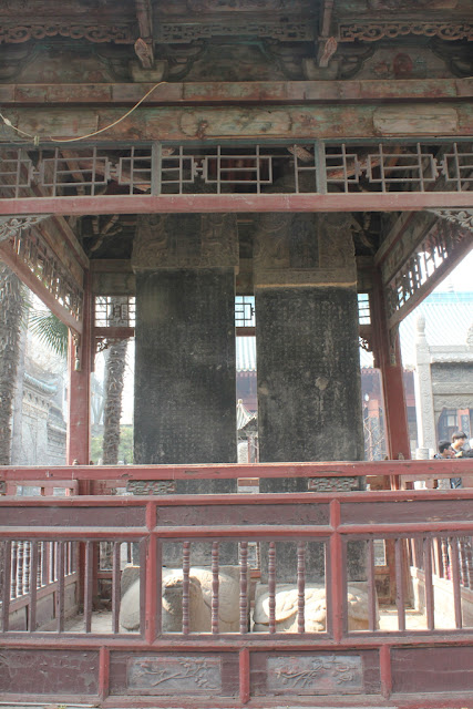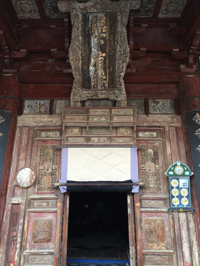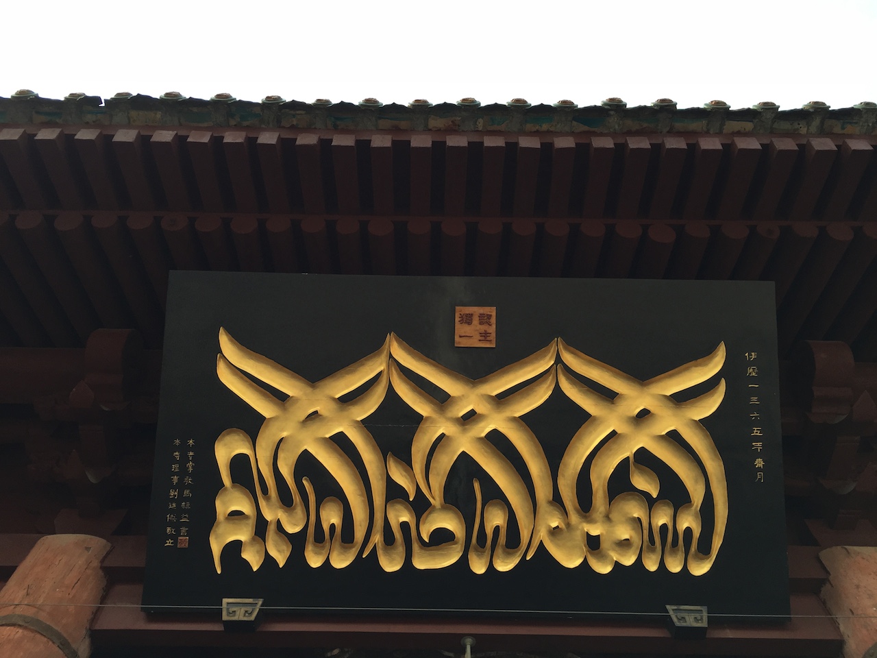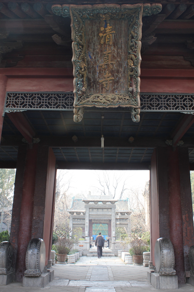 彷彿一座皇親貴族的府邸,踏入清真大寺,莊嚴肅穆的氛圍。全寺院沿東西走向,呈長方形,共分四進院落。從正門的木牌坊進入、穿越五間樓、通過明石碑坊、繞過宣禮樓、一路到鳳凰亭後、即可以看到單檐歇山的禮拜大殿。南北兩邊,各有展廳、講經堂、敕賜殿。 朱色的木質大牌坊,建於17世紀,矗立在磚雕照壁的對面,異角飛檐、斗拱層疊,普遍上都會出現在中國的寺廟。 中央矗立石碑坊一座,為三間四柱式,中楣鐫刻“天監在兹”,兩翼各為“虔誠省禮”和“欽翼昭事”,乃建於明朝。石碑坊後面南北兩側,各矗立“沖天雕龍碑”一通,一為明萬曆三十四年“敕賜重修清真寺”碑,碑陰鐫刻宋米芾手書“道法參天地”五個大字;一為清乾隆三十三年“敕修清真寺”碑,碑陰鐫刻明天啟年間禮部侍郎董其昌手書“敕修禮拜寺”,五個大字。
