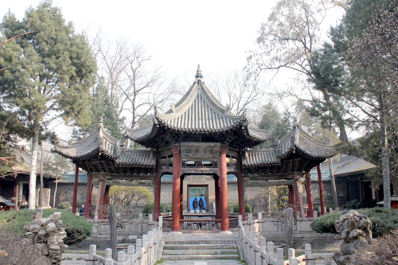 敕修賜殿,南宋時期禮拜殿,收藏有漢字、阿拉伯文、波斯文石碑、慈禧題字的牌匾“”派衍天方。據傳慈禧太后西行是,馬福祥,中國穆斯林將領,字雲亭,回族,甘肅河州人,是隨身侍衛,在慈禧離開西安是請太后為清真寺題字。 “省心樓”,矗立在院落正中,二層三檐八角攢頂,為宣禮者呼喚教徒禮拜的至高點。去的時候,正進行維修。繞過“省心樓”,眼前一座精美的亭子,集牌樓和亭閣於一體的獨特建築。中央主亭呈六角形,飛檐尖頂,兩側三角形似牌樓,左右翹翼,三亭相連,稱為鳳凰亭,亭的設計貌似鳳凰展翅。 禮拜大殿,坐落院的最西部,殿寬七間進深九間,屋頂覆以藍色琉璃瓦,飛檐斗拱宏大,殿內天棚藻井彩繪蔓草花紋套刻經文六百餘幅。大殿刻容納一千多人。