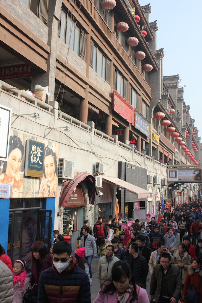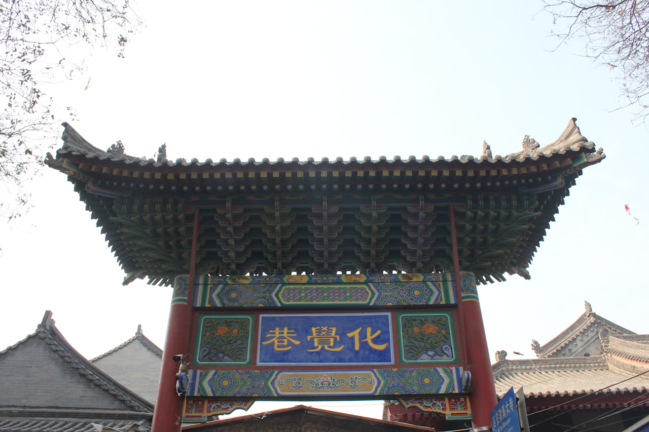 人潮洶湧的回坊老街,一股羊騷味撲鼻而來。老街口右邊,即鼓樓西北隅,中國牌坊寫著“化覺巷”,巷內有一座歷史悠久、古色古香的西安清真大寺。