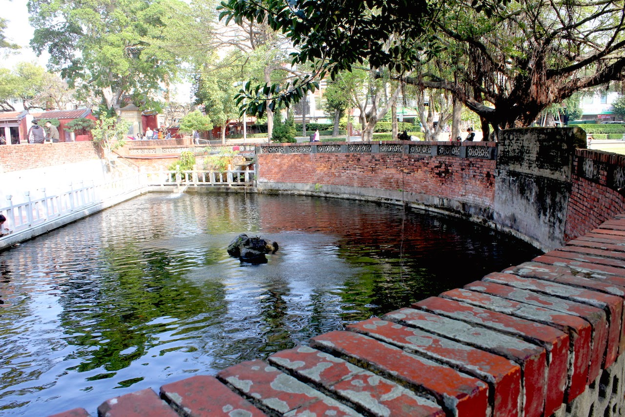 孔廟庭園前方有一座半圓形的水池,稱為「泮池」。