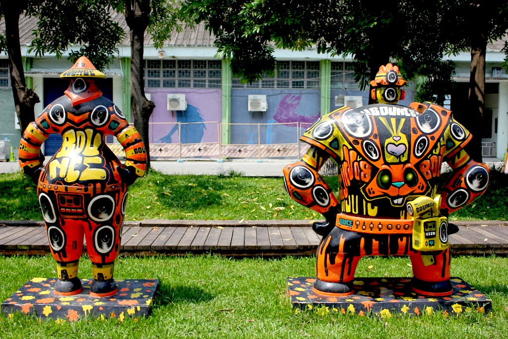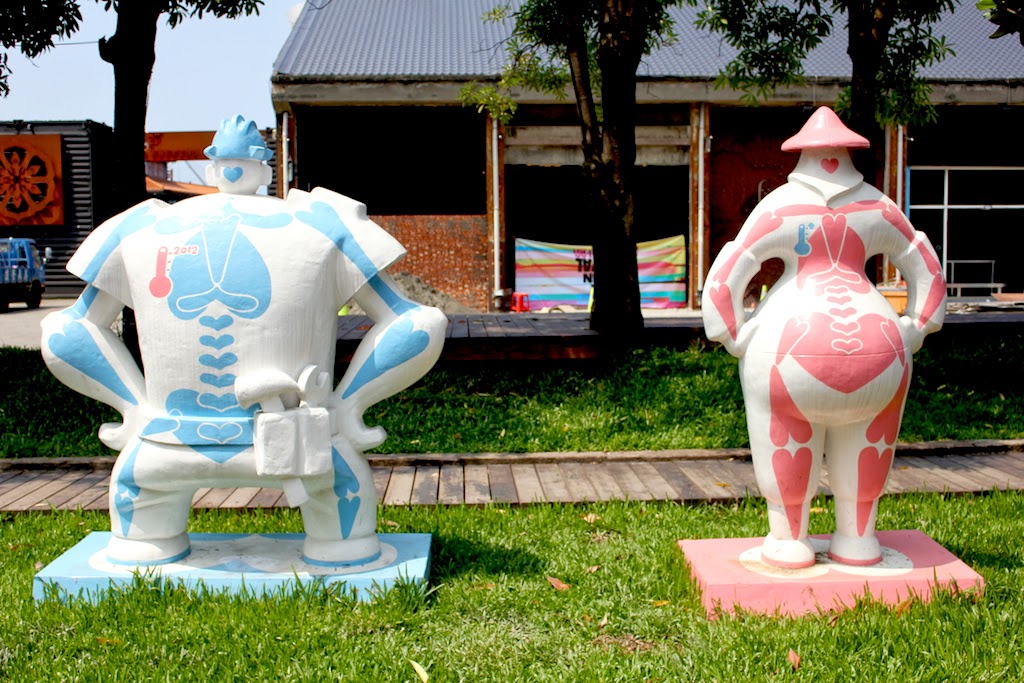 我想,除了旗津,到高雄的其一目的是,感受這裡的藝術。從雜誌上發現,駁二藝術特區是一個天馬行空的地方。安排一個早晨,完全不耗時,只想體驗沒體驗的經驗,感受沒有過的感受。 乘搭地鐵橘線,到鹽埕埔站,出站後,跟著告示板走。深深被駁二藝術特區的概念吸引。藝術發展,無限空間,這一點看得出臺灣的創意與情調。廢物利用,再循環,綠化等,都是時代應該多多提倡的意識。塑造一個乾淨,文明,舒適的環境。藝術,它不僅僅是創意,創作精神;也可以達到修身養性的作用,無論是創造者,抑或觀賞者。給藝術家一個掌聲,給他們一個鼓勵。可以一直把藝術的精神傳達。 散步,憩息,騎自行車,約會,除了觀賞藝術,看展覽外。我喜歡前衛,活力豐沛的駁二藝術特區。駁二藝術特區,藝文空間,絕對成為藝術的新潮流。牆上,畫有一副巨大的地鐵站的圖,栩栩如生。這個由老倉庫改建的藝術角落,全然換上新的衣裳,五顏六色,可愛有趣的圖案。這是三年前的駁二藝術特區,最搶眼的莫過於變身金剛的“大黃蜂”。還有,一尊尊的“勞工”公仔,塗上不同的藝術的圖案,頗有故事,具有高雄的象徵。還有一些大型立體的作品,陳列在倉庫前的空地。 駁二位於,碼頭旁的倉庫群藝術特區。這個以港區舊有倉庫轉型成為藝術空間,獨樹一幟的風格,為港都帶來濃厚的藝術氣息。也提供愛好藝術者,一個實驗發揮的空間。無論是學生或業者,一定能打造極具獨特的藝術空間,帶給市民一個舒適的休閒地方。 |