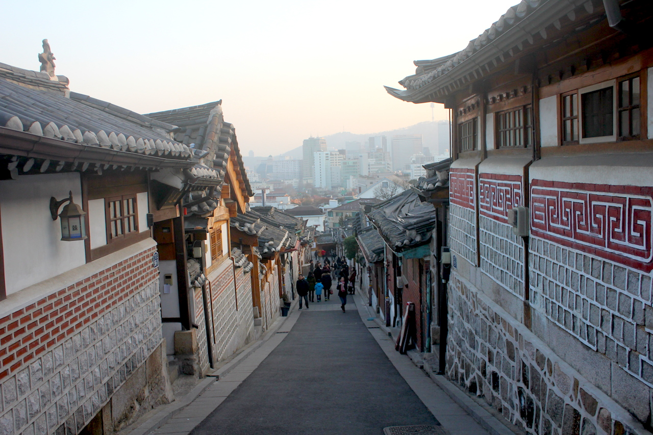 北村,處於密集的地方,是朝鮮時期建造的高官達人居住區,也是當今首爾最具代表性的傳統居住地。北村,北高南低,踏在高處,可以看到周圍的美麗景觀。北村後側,伸有海拔高度463米的白岳山;西有太祖李成桂所建的朝鮮第一宮殿,景福宮,東有昌德宮;還可以看到新時代繁華都會的首爾市。