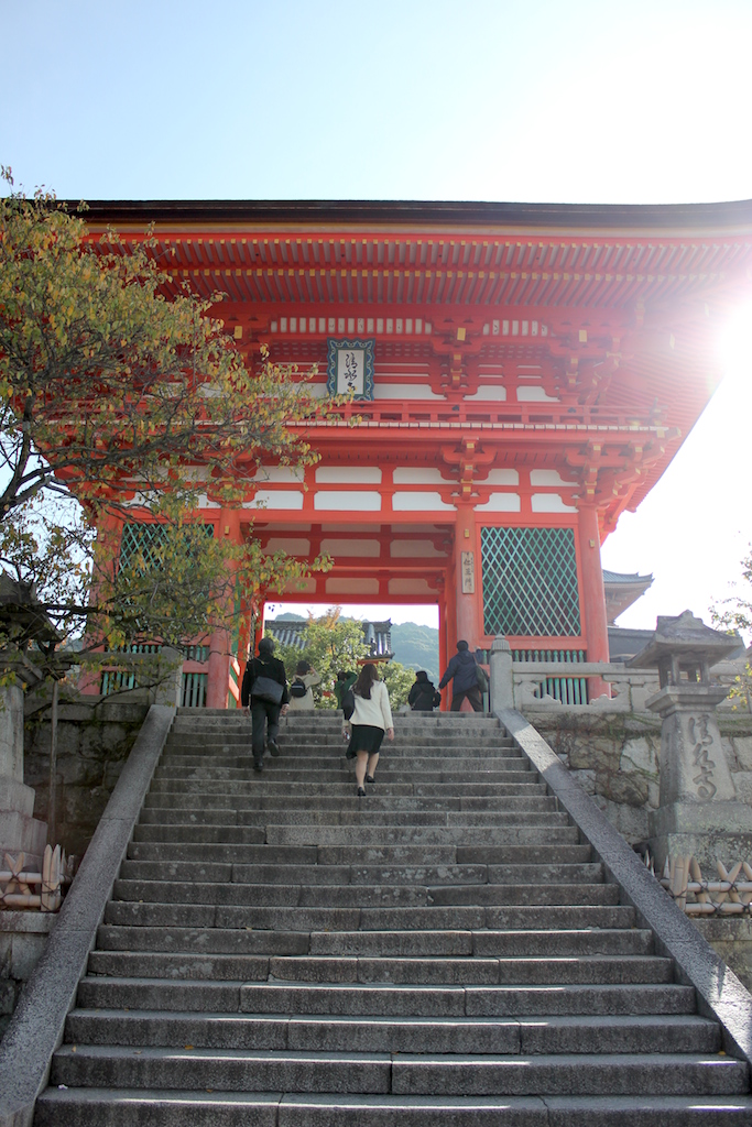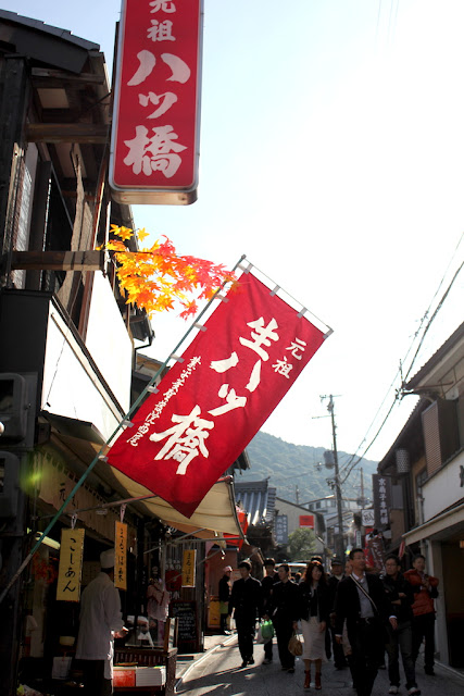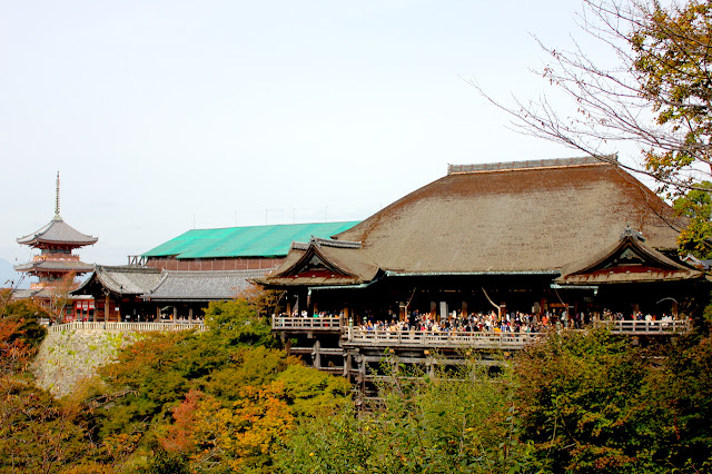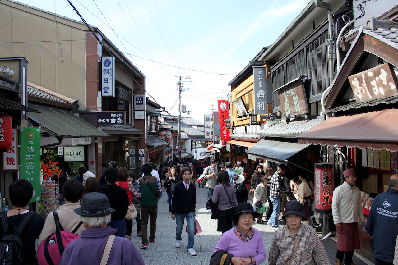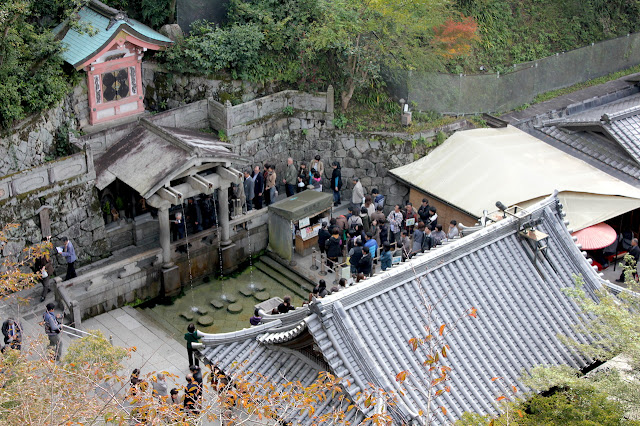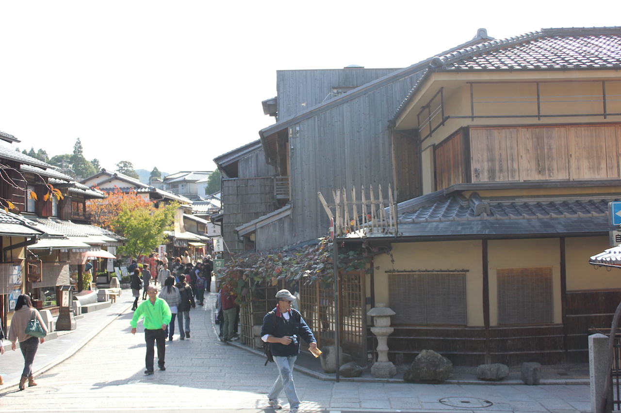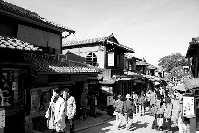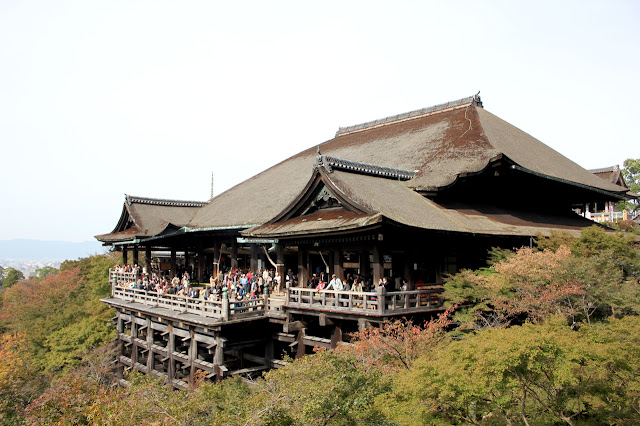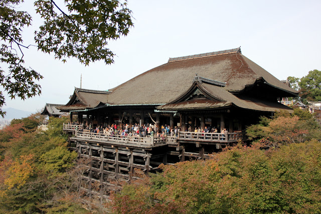 清水坂,往清水寺的入口,一路山坡的地形。一大清晨,清水坂街道已經是人潮擁擠,擠得水泄不通。撇開購物的想法,一路往清水寺走。眼前的朱紅的漆、切妻式的風格,正是“仁王門”,入清水寺本堂的正門。 清水寺京都有名的寺院,聞名世界。始建於778年,屬於日本最古老的佛教宗派法相宗。寺院的本堂被指為國寶,同時仁王門、三重塔、鐘樓也是重要的文化遺產。1994年,清水寺作為“古都京都文化遺產”之一,被列入聯合國教科文組世界文化遺產名錄。 神聖的木質古寺院,木枝編造的屋頂,清水寺最矚目的是其“木製梯”舞台建造。巧奪天工的構築,長達13米從山下一直通向大廳,舞台結構完成没有使用釘子,巍峨地聳立於陡峭的懸崖上。不可思議的工程,古代人類是怎麼辦到的?這,也形成了建築裡的一種美學。許多人,都戀上這座建築的構造,坐在遠方的斜坡上,正面對寺院大顯身手。無論是素描、油畫、彩畫,都呈現出栩栩如生的作品。 於清水寺正殿以北,有座地主神社,乃乞求愛情及牽線搭橋神的神社。這類似中國傳統祈求月老牽線的信仰。把期望,變成信仰非壞事,當作寄託,祈求心安理得,夢想實現。神社前有兩塊石頭,站在18米以外把蒙上雙眼,如果摸到石頭,表明可以找到真爱,得到好運。日本的神社,其中最有特色的是“繪馬”,把願望寫在木板上。繪馬,是日本人許願的一種形式。許一般繪馬一塊五角形木板,信男信女們在木塊上面寫著自己的心願,神社或廟在某個時候舉行法事時,將木塊燒掉,人的願望也隨著能實現。 秋天別來無恙,想說,這個幽靜的季節,心情也隨之轉變。輕盈,涼風吹拂;秋蕭瑟,楓葉枯萎前,鮮紅遍佈滿山谷,秋的迷人之處。靜,一般如寒蟬;有水流,溪流潺潺;有風鈴,叮嚀叮嚀;時而傳來,交頭接耳唧唧咕咕。清水寺的山崖,楓葉滿山遍野;楓葉的顏色層次,無與倫比的美麗;從觀景台(清水寺的舞台) 眺望京都市的鳥景,簡直引人入勝,陶醉在眼前的景色。 朝聖的香客,絡繹不絕。日本的寺廟,源自於中國的宗教信仰。清水寺,自古以來都是供奉千手觀音,乃家喻戶曉的神像。清水寺的名字,來自於“音羽之瀑”,其瀑布有三個源流。每個源流都有各自的特長:長寿、學業有成、愛情順利。流淌著,被尊為靈水的“音羽之水”,香客旅客皆可以,用水舀汲水而飲。 走進老街清水坂、二年坂、三年坂,彷彿穿越時代,濃濃的古韻味油然。舊舊的建築物,對喜歡懷古的人,簡直看得心曠神怡。得知,有句話“洛東清水坂,一念二寧三年坂,坂坂相連在洛東。”清水坂、二年坂、三年坂縱橫交錯,商業特色外,卻不顯得烏烟瘴氣、凌亂。坂坂井然有序,每戶屋舍,存在著古京都的濃厚氣息。 站在三年坂最高的石階,望下去的木造房舍,這裡不是電視場景,原汁原味的老街。三年坂,一段46階的石階,連結二年坂與清水坂的石坂道,兩旁的屋舍大多為江戶時代的町屋木造房舍,風格古典味道。復古建築,搭上時代的商機,吸引更多的旅客光顧。街道兩旁的商戶,琳琅滿目的日式商品、有情調的日式餐廳、悠閒的日式茶館、精美的本土護膚館。這裡,絕對淘寶的地方;不然,也是休閒的去處,一個美好的下午,就這樣計劃。 前方木質八坂的塔,其實叫作法觀寺,擁有千年之久,乃供奉藥師如來。這一帶轉角遇到美麗的町屋木造房舍,處處復古景色。穿草履配上分趾襪子,細步緩行,踩在石坂道上。迎面而來,穿著日本和服的女性,圖紋豔麗,花枝招展。梳結一頭島田髷、一副濃濃白妝嫵媚、一口紅胭脂櫻唇,管不著燕瘦環肥,臉帶靦腆但俐落大方,一股窈窕淑女的韵味。井底之我的我,還是第一次接觸,穿和服的女性,非常興奮。“大力士拖車仔”,日本帥氣的男生,我對他們的形容。他們拖車,帶旅客穿梭二年坂、三年坂、八坂塔等處,一覽這裡的風景。 累了餓了,找一家特色的日式餐館,溫飽肚子。一個早晨到中午,我在這裡邂逅,享受京都特色的文化。 |