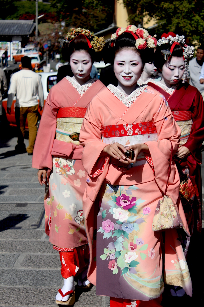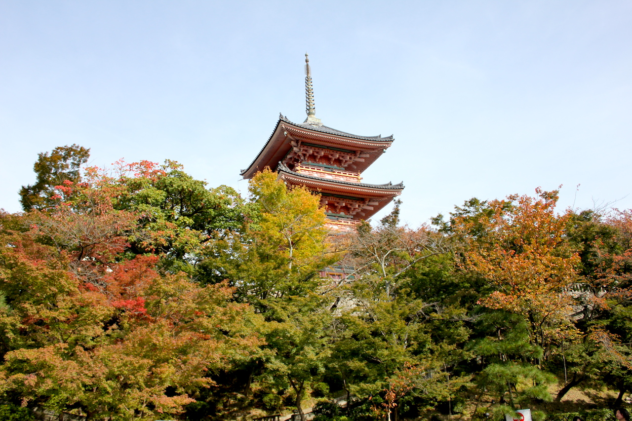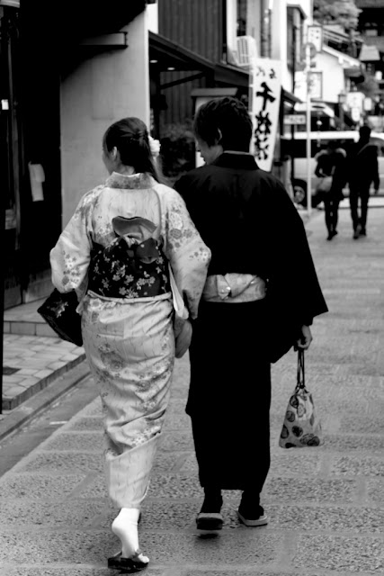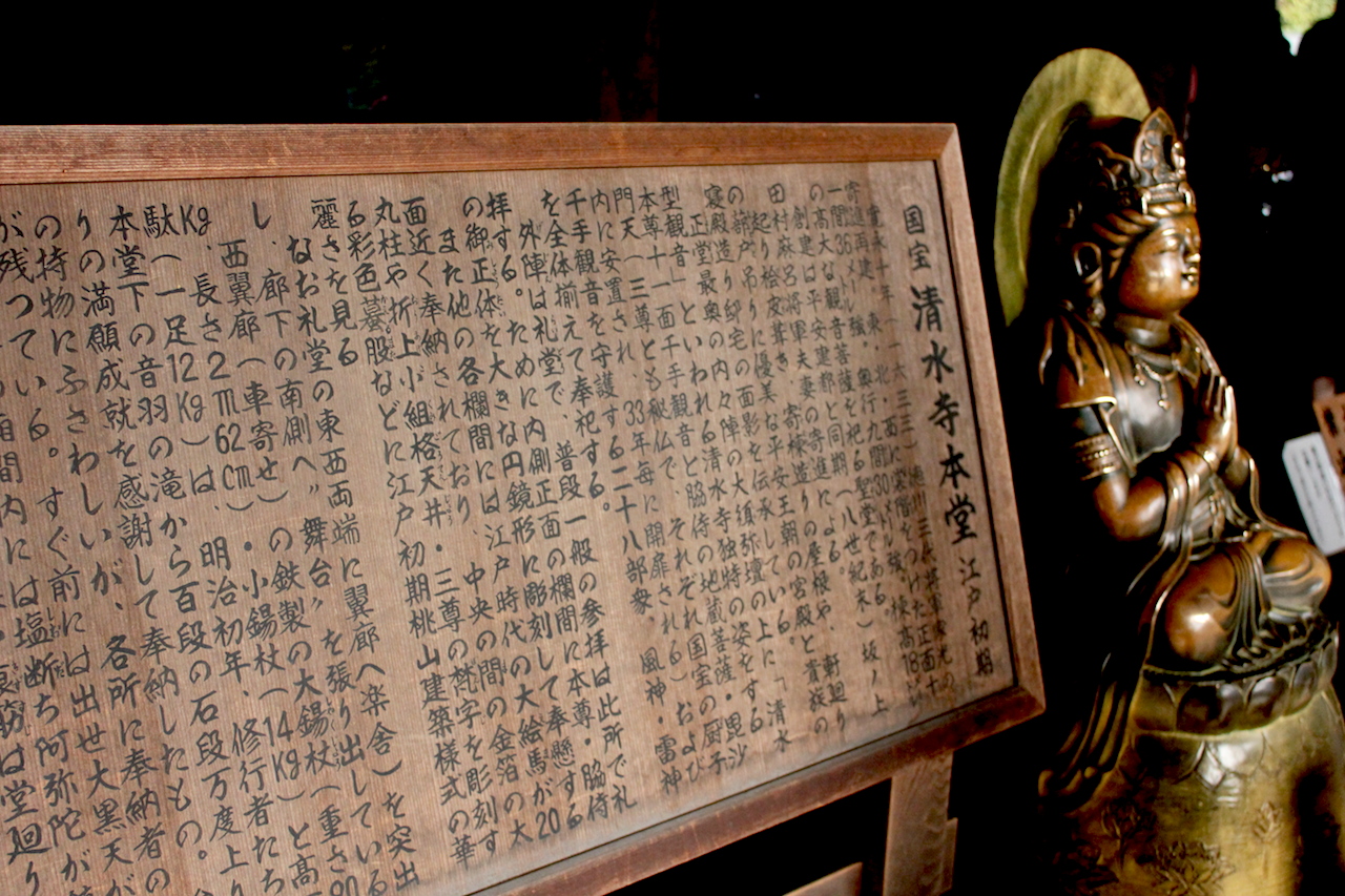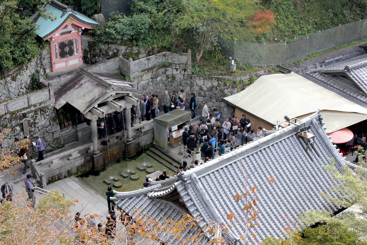 清水坂,往清水寺的入口,一路山坡的地形。一大清晨,清水坂街道已經是人潮擁擠,擠得水泄不通。撇開購物的想法,一路往清水寺走。眼前的朱紅的漆、切妻式的風格,正是“仁王門”,入清水寺本堂的正門。 清水寺京都有名的寺院,聞名世界。始建於778年,屬於日本最古老的佛教宗派法相宗。寺院的本堂被指為國寶,同時仁王門、三重塔、鐘樓也是重要的文化遺產。1994年,清水寺作為“古都京都文化遺產”之一,被列入聯合國教科文組世界文化遺產名錄。 神聖的木質古寺院,木枝編造的屋頂,清水寺最矚目的是其“木製梯”舞台建造。巧奪天工的構築,長達13米從山下一直通向大廳,舞台結構完成没有使用釘子,巍峨地聳立於陡峭的懸崖上。不可思議的工程,古代人類是怎麼辦到的?這,也形成了建築裡的一種美學。許多人,都戀上這座建築的構造,坐在遠方的斜坡上,正面對寺院大顯身手。無論是素描、油畫、彩畫,都呈現出栩栩如生的作品。 於清水寺正殿以北,有座地主神社,乃乞求愛情及牽線搭橋神的神社。這類似中國傳統祈求月老牽線的信仰。把期望,變成信仰非壞事,當作寄託,祈求心安理得,夢想實現。神社前有兩塊石頭,站在18米以外把蒙上雙眼,如果摸到石頭,表明可以找到真爱,得到好運。日本的神社,其中最有特色的是“繪馬”,把願望寫在木板上。繪馬,是日本人許願的一種形式。許一般繪馬一塊五角形木板,信男信女們在木塊上面寫著自己的心願,神社或廟在某個時候舉行法事時,將木塊燒掉,人的願望也隨著能實現。 秋天別來無恙,想說,這個幽靜的季節,心情也隨之轉變。輕盈,涼風吹拂;秋蕭瑟,楓葉枯萎前,鮮紅遍佈滿山谷,秋的迷人之處。靜,一般如寒蟬;有水流,溪流潺潺;有風鈴,叮嚀叮嚀;時而傳來,交頭接耳唧唧咕咕。清水寺的山崖,楓葉滿山遍野;楓葉的顏色層次,無與倫比的美麗;從觀景台(清水寺的舞台) 眺望京都市的鳥景,簡直引人入勝,陶醉在眼前的景色。 朝聖的香客,絡繹不絕。日本的寺廟,源自於中國的宗教信仰。清水寺,自古以來都是供奉千手觀音,乃家喻戶曉的神像。清水寺的名字,來自於“音羽之瀑”,其瀑布有三個源流。每個源流都有各自的特長:長寿、學業有成、愛情順利。流淌著,被尊為靈水的“音羽之水”,香客旅客皆可以,用水舀汲水而飲。 走進老街清水坂、二年坂、三年坂,彷彿穿越時代,濃濃的古韻味油然。舊舊的建築物,對喜歡懷古的人,簡直看得心曠神怡。得知,有句話“洛東清水坂,一念二寧三年坂,坂坂相連在洛東。”清水坂、二年坂、三年坂縱橫交錯,商業特色外,卻不顯得烏烟瘴氣、凌亂。坂坂井然有序,每戶屋舍,存在著古京都的濃厚氣息。 站在三年坂最高的石階,望下去的木造房舍,這裡不是電視場景,原汁原味的老街。三年坂,一段46階的石階,連結二年坂與清水坂的石坂道,兩旁的屋舍大多為江戶時代的町屋木造房舍,風格古典味道。復古建築,搭上時代的商機,吸引更多的旅客光顧。街道兩旁的商戶,琳琅滿目的日式商品、有情調的日式餐廳、悠閒的日式茶館、精美的本土護膚館。這裡,絕對淘寶的地方;不然,也是休閒的去處,一個美好的下午,就這樣計劃。 前方木質八坂的塔,其實叫作法觀寺,擁有千年之久,乃供奉藥師如來。這一帶轉角遇到美麗的町屋木造房舍,處處復古景色。穿草履配上分趾襪子,細步緩行,踩在石坂道上。迎面而來,穿著日本和服的女性,圖紋豔麗,花枝招展。梳結一頭島田髷、一副濃濃白妝嫵媚、一口紅胭脂櫻唇,管不著燕瘦環肥,臉帶靦腆但俐落大方,一股窈窕淑女的韵味。井底之我的我,還是第一次接觸,穿和服的女性,非常興奮。“大力士拖車仔”,日本帥氣的男生,我對他們的形容。他們拖車,帶旅客穿梭二年坂、三年坂、八坂塔等處,一覽這裡的風景。 累了餓了,找一家特色的日式餐館,溫飽肚子。一個早晨到中午,我在這裡邂逅,享受京都特色的文化。 |