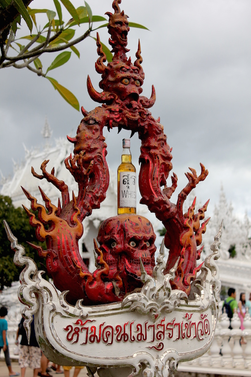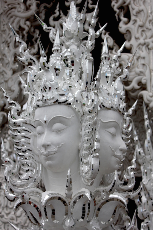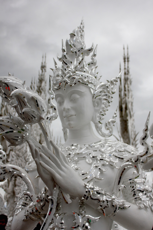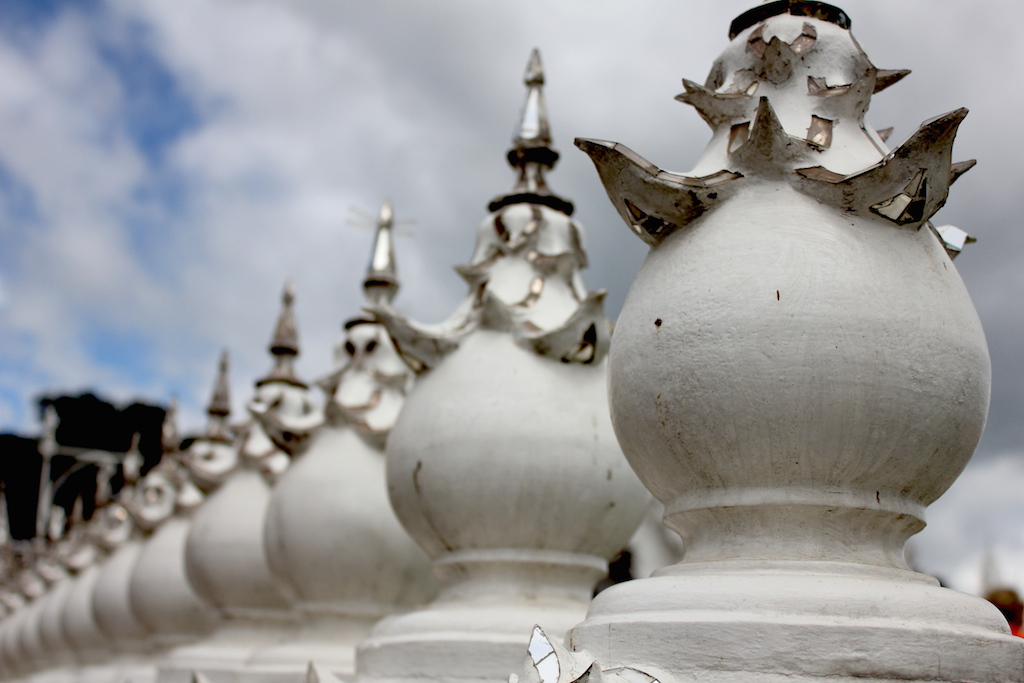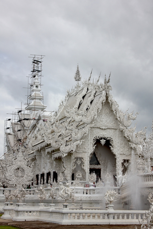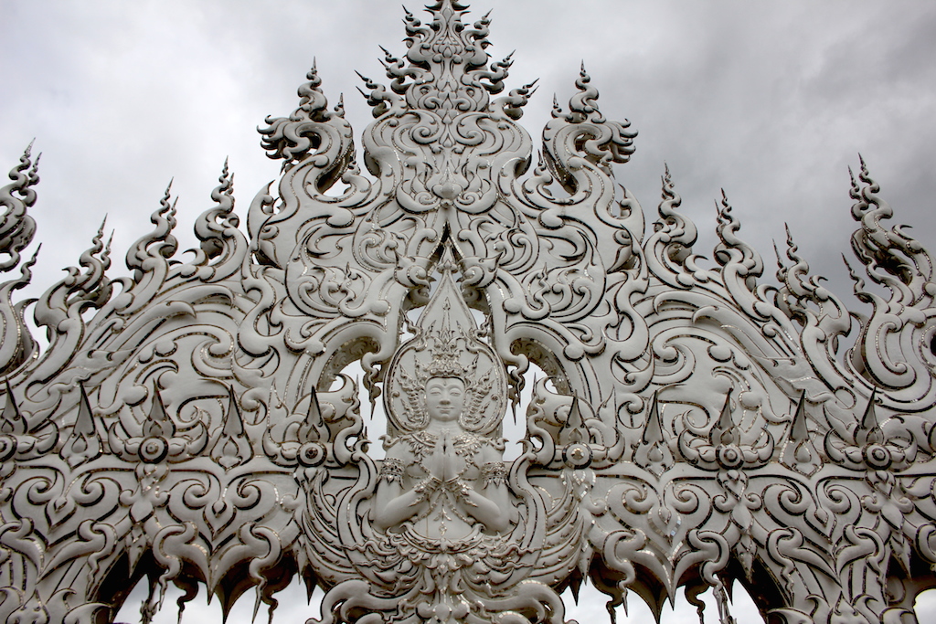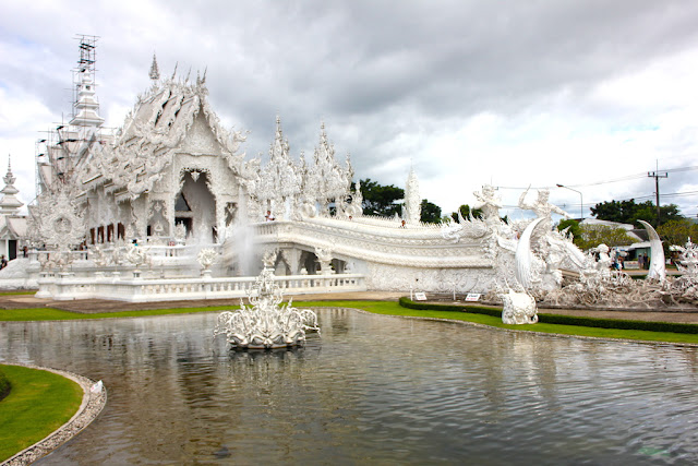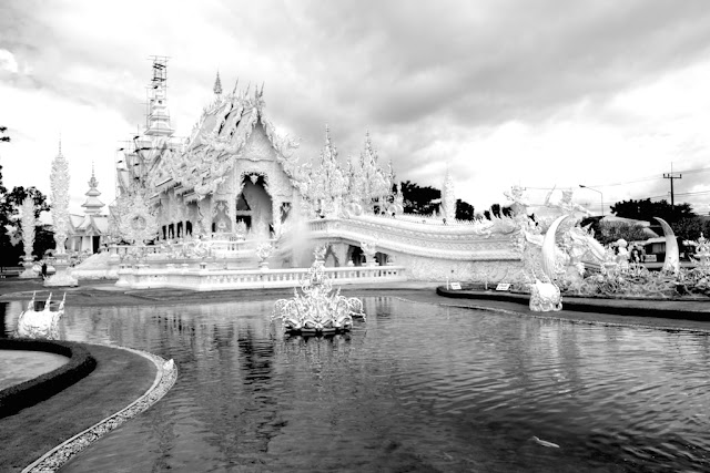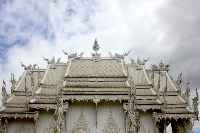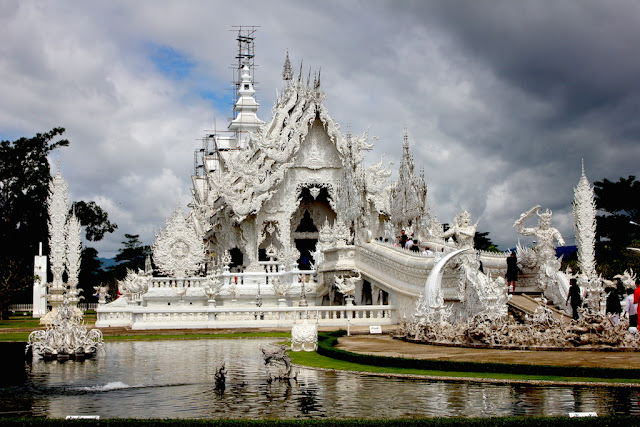 白廟,距離清邁市,大約2個小時。白廟的建造,風格別樹一幟,有別於泰國寺廟的典型構造,金光閃閃的燕尾與裝飾。既然,寺廟稱為“白”,乃因為建築物,以“純白”為概念,一般稱之為“White Temple”或Wat Rong Khun,龍坤廟。