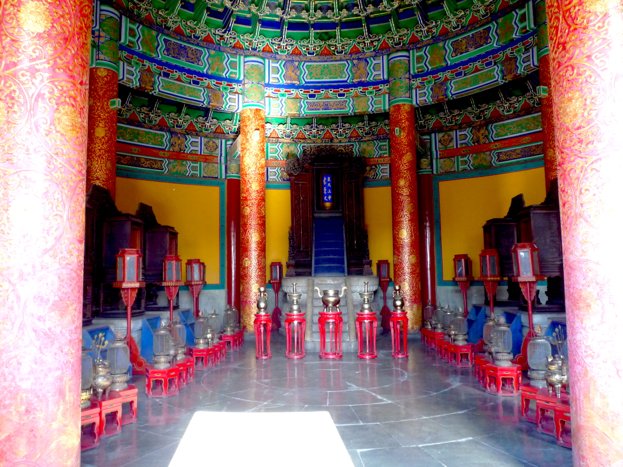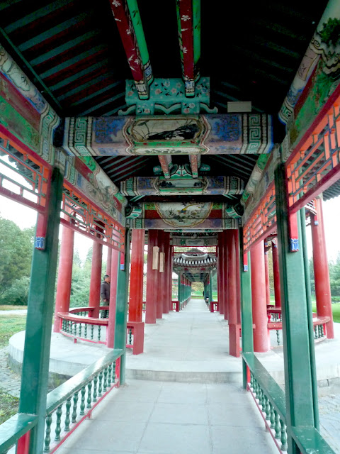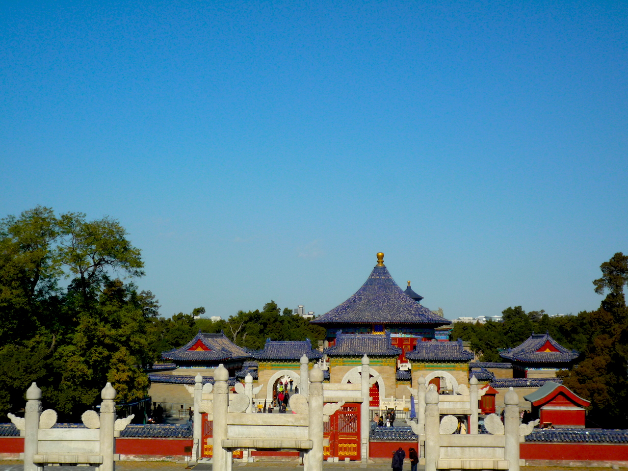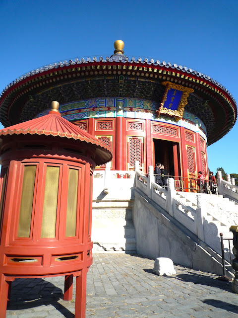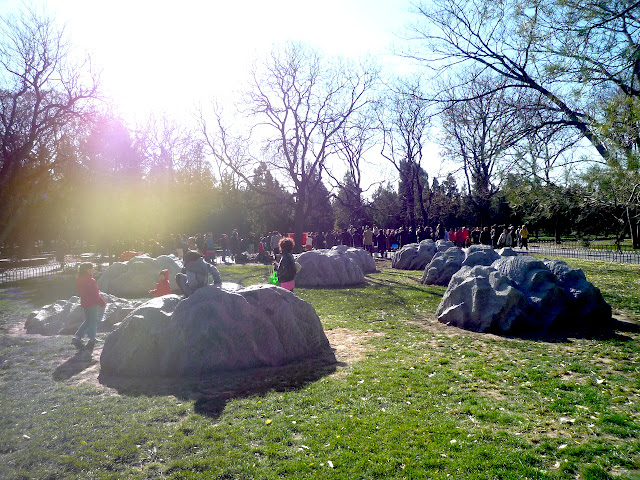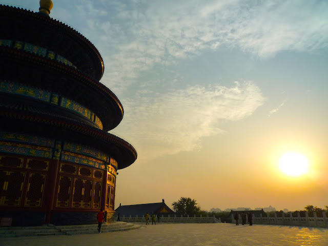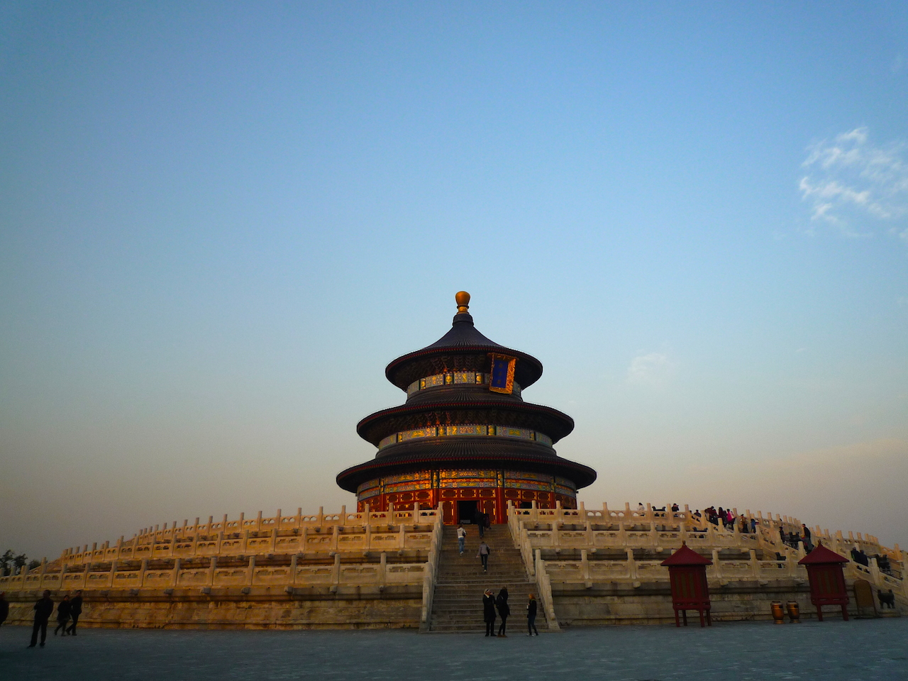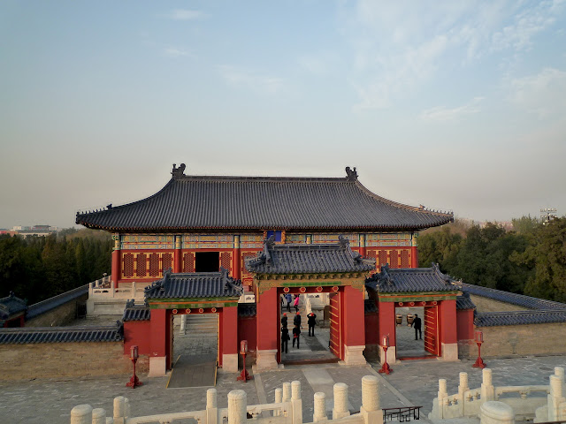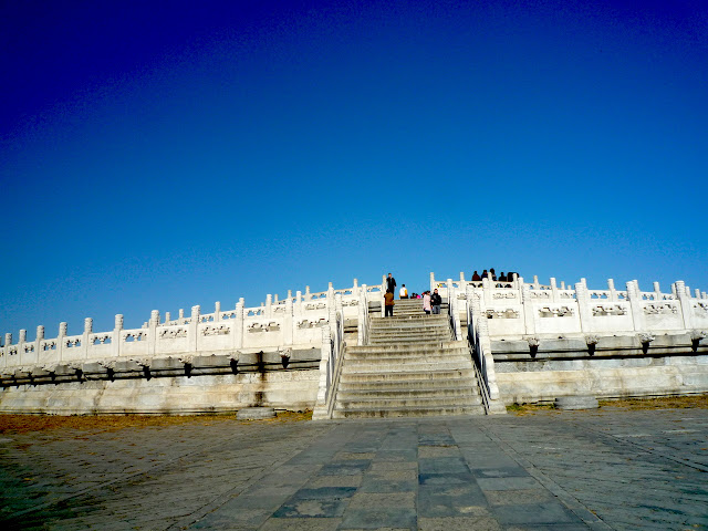 天壇,明、清兩代皇帝“祭天”“祈谷”的場所。壇域北呈圓形,為“祈谷壇”,用於春季祈禱豐年;南為方形,即“圜丘壇”,用於冬至日祭天。天壇被兩重壇牆分隔成內壇和外壇,形似「回」字。南北壇結合,寓意為“天圓地方”。在沒有科技的時代,中國古代天文學,史前史後,歷代諸侯觀天探星,測出真實規律與證據。“祭天”與“祈谷”,顧名思義,皇帝祈求五谷豐收,國泰民安,風調雨順。。。 南北兩壇,以一條巨大的磚高甬道,即丹陛橋相連,也是天壇建築主軸線。東側有宰牲亭、神廚、神庫等;西側有齋宮, 即舉行祭天大典前皇帝進行齋戎的場所。壇內主要建議有:祈年殿、皇乾殿、圜丘、皇穹宇、回音壁、七星石、望燈等。天壇,始建於明永樂十八年(1420年)仍現存錦國古代規模最大的祭祀建築群;公園面積大約紫禁城的四倍。 從東門起,七十二長廊是市民聚集的地方。老人家,悠哉悠哉的生活,相聚與交流,從一個早晨到午後,他們在長廊活動,下棋、玩牌,彼此切磋。