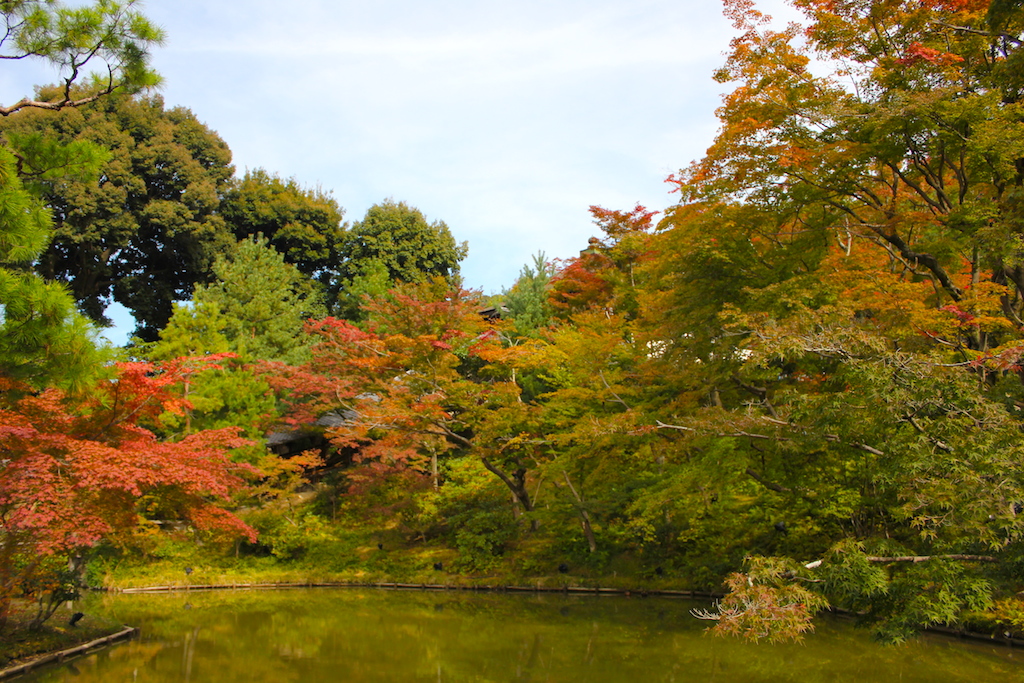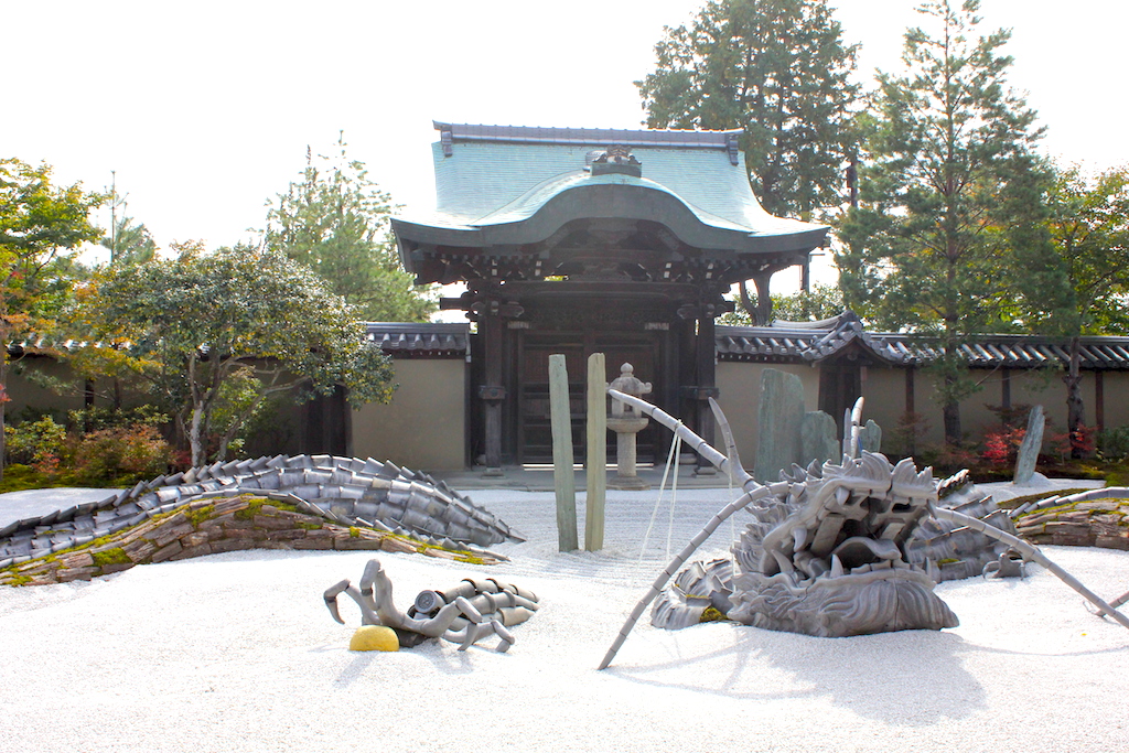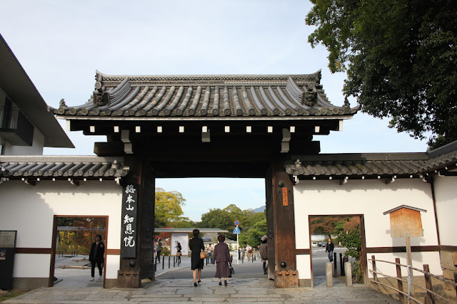 漫無目的,反正京都古色古香。那個街角轉彎,又是一座寺廟;那一個巷口又是神社。秋風徐徐,始終覺得,京都襯托出美輪美奐,愜意的情懷。是風嗎?是它吹的魔咒?是它吹的迷藥?是它吹著一股意興闌珊,把我吹得神魂顛倒,撲倒在京都的胸膛,回不了神,我想逗留更久。 高台寺,為豐臣秀吉去世後 ,其夫人北政所(寧寧,出家後號高台院湖月尼)為其祈禱冥福而於慶長11年(1606年)所建。秀吉和北政所被供奉在靈屋,北政所像的下方就是其陵墓所在地。 現存開山堂、靈屋、傘亭、時雨亭、表門、歡月台等,為國家重點文物。以開山堂為中心,向東西延伸開來的池塘庭院,據傳是小堀遠州之作。 在高台寺,一角的地上,灰灰白白的沙粒,有龍在沸騰。這是藝術嗎?這是高台寺著名的“波心庭”。細膩的傑作,用一千五百多片瓦裝點成的“親子龍”。有種,騰雲駕霧的畫面。這件作品,在象征著大海的寺院里飛騰。 高台寺的魅力,來自於“蒔繪”。須彌壇(佛座)佛龕上繪有華麗的蒔繪(泥金畫)裝飾,是桃山時代美術作品代表,以“高台寺蒔繪”之名廣為世人所知。 外觀如“傘”,相信因此得名。“時雨亭”,日本唯一的兩層樓茶屋。與傘亭對稱相連,是秀吉與寧寧納涼品茗的場所。 或許,日本的寺廟大同小異,但我深信,每一座寺廟,都擁有自已的獨特、歷史趣事、它存在的意義。或許,我不是歷史學家,更不了解日本的文化,但學習與見識,乃一身不應該排擠的事情。 旅行就是要徒步探索,京都的歷史悠久,每個角落都不能缺席,如果時間與體力的允許。総本山知恩院,是日本佛教中的淨土宗大本山的寺廟。淨土宗是由法然在1175年所創,因為它淺顯易懂的教義而吸引大批的平民信眾。時至今日,它仍然是最大的佛教教派。 知恩院建於1234年,山號為“華頂山”,屬於日本的國寶。知恩院之最是“三門”,是日本最大的寺廟主門,有24公尺高。另一個打破寺廟建築紀錄的文物,是“大鐘”,日本最重的鐘。寺廟大大小小的建築,風格蘊含著中華風格。喜歡日本寺院的庭院,綠葉植物呈現小橋流水,細膩的設計,令人賞心悅目。