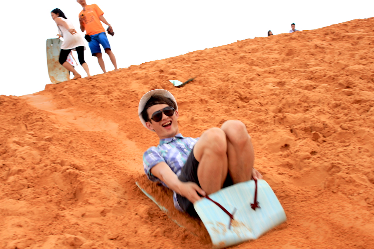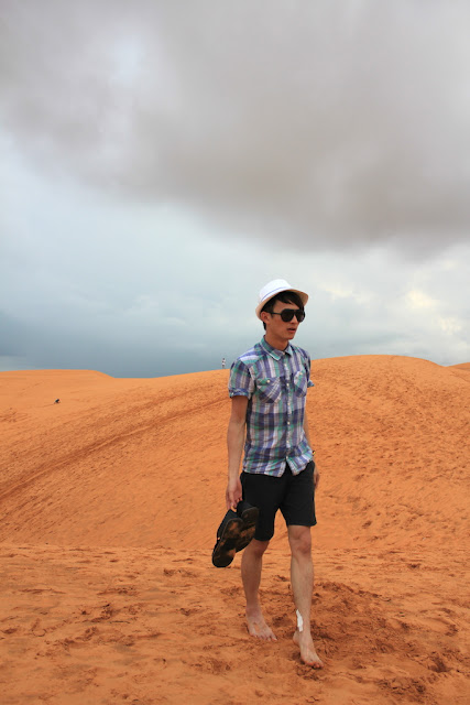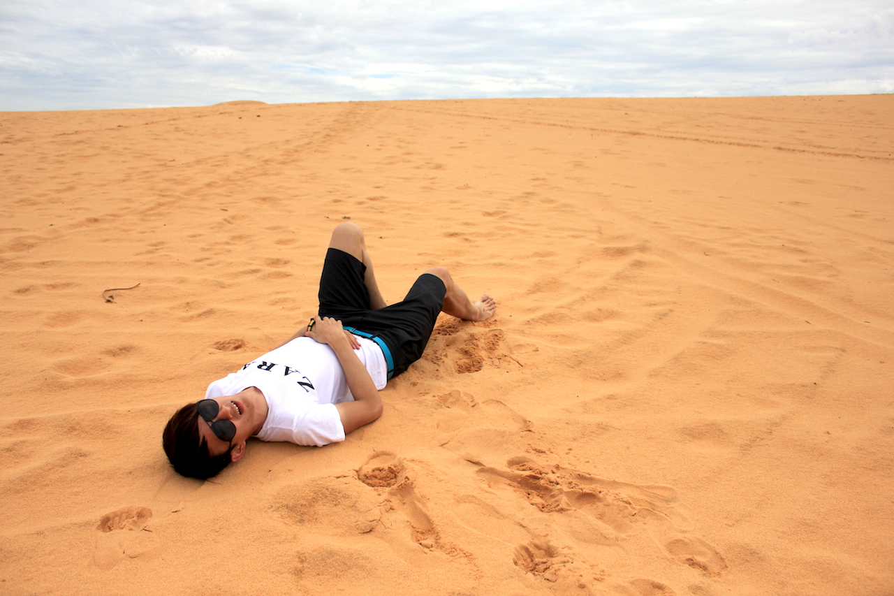 我用一種詩情畫意的心情,騎電車的方式,獨自一個人在越南美奈(Mui Ne)瀟灑遊玩。美奈仍越南南部平顺省(Binh Thuan)潘切(Phan Thiet)近郊的一座城鎮,面临南中国海,风光明媚。自1995年開發成旅遊度假區,這裡以漁村、海滩、“紅”及 “白”沙丘聞名。 我選擇從胡志明市出發,大約四小時的車程。Pham Ngu Lao是背包客最愛到的一條街,這裡有一家值得信賴的著名旅社The Sinh Tourist,可以向這家購買巴士票到美奈。來往的巴士班次不多,不過安排周到。所以,出發前需要做功課,建議3天2夜的行程。在美奈,有許多四及五星級的度假酒店,便宜不貴,跟大馬廉價的酒店一般價格沒兩樣;而且酒店還擁有私人的沙灘。 美奈,這裡是一個寧靜的小鎮,少了城市的喧嘩。抵達酒店後,便馬不停蹄地到酒店後方的海灘。風吹著意興闌珊,浪濤翻滾到沙灘。躺臥在床舖上,慢慢品嚐大自然的。看見幾位天真的村童,在沙灘上玩沙,看似有趣。湛藍天,我聞到一股咸咸腥臭的味道,誰家的船停泊在海中間,原來附近是漁村。沙是細的,好大的海星在沙上匍匐。貝殼失去生命,收藏起來,卻有另一個藝術價值。 我下榻的酒店是Pandanus Resort,鄰近紅沙丘。我跟酒店借單車。紅沙丘沒有撒哈拉滿天飛沙走石。不過,這也是人生中第一次親身體驗,紅沙丘一座一座如山又如谷,遼闊。小孩子如此天真無邪,強迫要求我這位大哥哥挑戰,玩著滑沙板。僅用一片大概160公分長的橡膠草席,從沙丘頂部滑下去,這種感覺如座雲霄飛車,還蠻刺激的。 站在紅沙丘頂上瞻望,最前方的是寬闊無際的大海洋,中間隔著大路及酒店。紅沙丘凹凸,在斜坡里看著沙連天,沙連海的情景。少不了海邊的一種情景,漁船靠在沙灘邊,浪打在岸上,漁船飄浮。太陽快下山,小小牛兒回著家。風陪伴,孤獨沒有來煩,我靜靜地坐在紅沙丘上,享受涼風及戀戀漁村風景。 另一天的早晨,目標白沙丘。白沙丘更像沙漠,離酒店及紅沙丘有段距離,位於較偏遠的地方。我的決定,我的電單車之旅,奔向遼闊的白沙丘。引擎鳴了,開始出發,帶著挑戰的心情飛行。忘了危險,忘了還有下一站,忘了一個人的旅行。遠方就是我要到達的綠州,去擁抱一片沙漠。 從我的酒店(紅沙丘對面)出發,大約40分鐘的路程,速度為60至80KM/J。所以,想駕電單車的話, 確保油是足夠的,因為途中沒有加油站,也很少有人戶。避免車跑拋錨,向出租的主人,確保車子是沒有問題的。 一路上,我越過荒蕪的草原,右手邊是海鷗咀嚼魚的大海洋。以為前方是越來越靠近的巍峨高山,到了盡頭卻是轉彎的方向。前方一看那是誰人的墳墓,我冷了腳步,騎得更快速。忘了騎了多少公里?隱約幾輛越過,沒有幾家人戶,僻壤的靜謐。不久,快抵達白沙丘時,左右風景都是大片荒蕪草原,如此乾燥,只有幾棵樹矗立。路是紅色沙泥,心中有股感覺,沙仿佛學會了起舞,跟著風的節奏輕盈。一邊駕駛、一邊唱歌、一邊左右看風景,我很享受當下的美好。記得帶口罩,因為一路上沙塵。還有頭盔,一定要有鏡的,防沙飛進眼睛。從遠方,一片一望無際的白沙丘,把我給愣住了。這裡一直是夏天,在艷陽的照射下,沙丘邊的菡萏,含苞待放。沙丘中,不大的綠洲,想必馬兒是渴了,一直低頭在喝水。把電單車停泊在小店前後,直接步上白沙丘。湛藍的天,細白的沙,當時沒有旅客,我簡直可以翩翩起舞。如果想在沙丘上挑戰騎車,這裡有出租小型吉普車。我躺臥在這片沙丘,雙腳朝向天空,我如此渺小。我慢步沙丘,腳印留在沙丘,看著沙丘的魅力。 離開美奈前,當地人稱“美麗神泉”。我騎著電單車到Fairy Stream,從酒店出發,大約十幾分鐘路程。Fairy Stream,擁有一個美麗的名字,神仙泉,是一條在奇岩怪石中流過的小溪。首先,我迷路了,因為入口沒有很明顯的告示牌。如果沒有問人,都不知道溪流在那?正確的地址,或許你要在酒店時問一問。進入小溪,是當地的一名年輕人帶路。那天一位旅客都沒有,可能很早。當然,少不了小費,感謝他的好意。從小溪口進入,水質還很清澈,溪流周邊有好多四葉草,聽說是幸運的植物。溪流水流很急,褐色的泥水,但水位很淺,我赤腳行走。由於鬆軟的泥土多,整條小溪都呈獻混濁的紅色,像洪水泛濫。小溪最特別之處,仍其周邊的景色,一邊是荒涼的紅土,另一邊則是茂密的樹林,2種截然不同的景色僅一河之隔。 遠離胡志明市的繁華喧嘩,去一趟美奈,感受越南人漁村的生活。雖然美奈離胡志明近四個小時的路程,不過沿途風景,就是越南的道地人,在郊外的生活。美奈,如此僻壤及靜謐,但卻有股輕鬆自在的旅行。最重要有沙漠、沙丘及海陪伴。 |