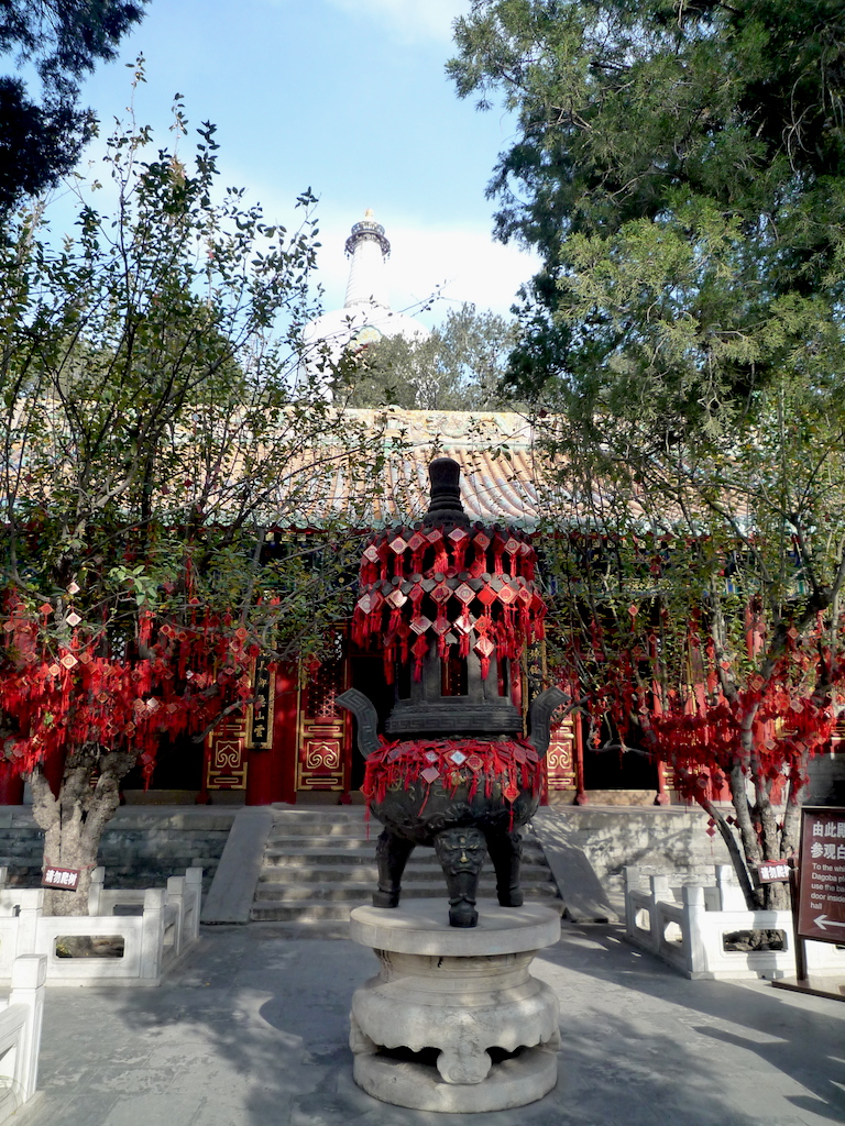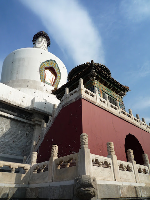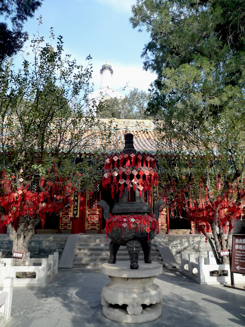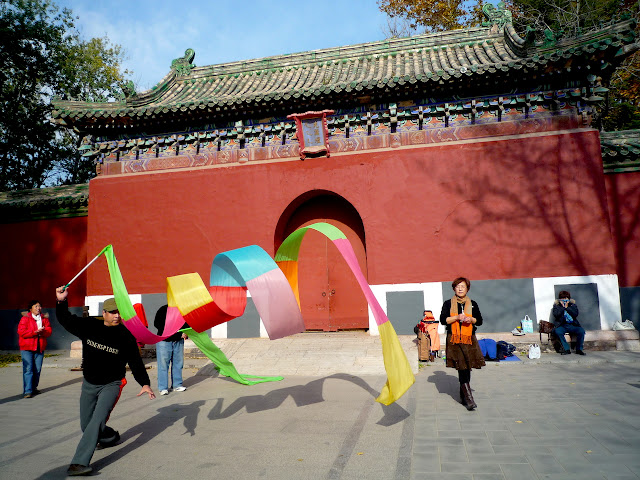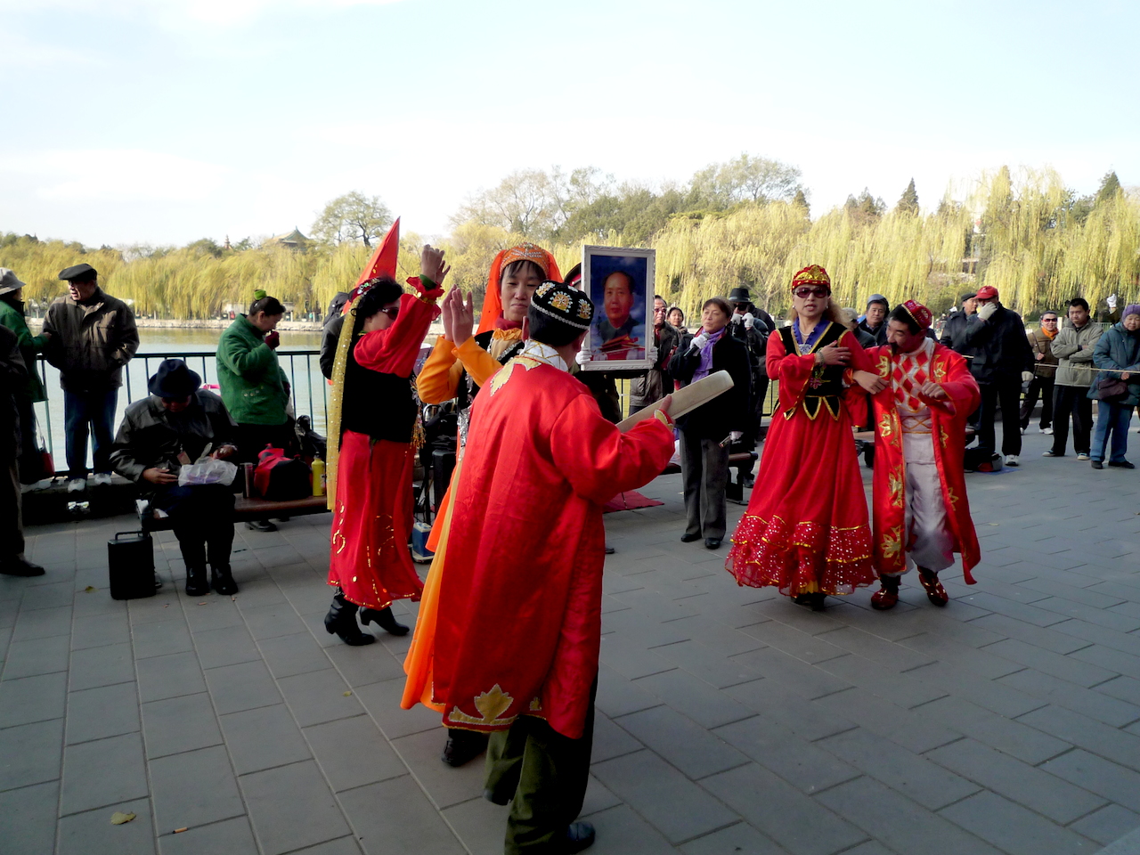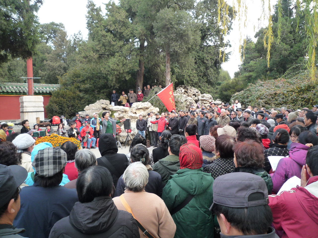 刀馬旦的槍法,在公園上映;一口京劇,鏗鏘有力。另一處,飄來一陣陣的旋律蕩漾;合唱聲音句句高亢、起承轉合,這裡是劇場嗎?那一頭,民族舞翩躚起舞,搭上華麗的民族服飾。還有,繽紛色彩的彩帶在旋轉,原來舞者是一位叔叔。 風光明媚、湖光山色的公園,加上歷史悠久,足以忙碌探索;卻遇上如此豐沛的餘興節目。不,這是市民退休,過晚年的生活嗎?我驚訝,北京北海公園的風景迷人,卻比不上眼前的畫面。我佩服年長的,依舊精力充沛、才華橫溢,看得我目瞪口大,慚愧不已。 秋天的風冷颼颼,翠綠垂柳婆娑,一株株佇立在湖畔上,茂密得引人入勝。清晨的公園,一片喜氣洋洋。雖然正直秋季,惟,公園裡的菊花展,綻放豔麗,賞心悅目。湖中的鴛鴦嬉水,別有一番逗趣。秋天的風,吹得全身上下慵懶,我不想離開,只想靜靜得在公園沈澱,凝視周遭的一切變化。 北海公園,始建於遼代,乃世界上現存建國時間,最早的皇家宮苑。除了賞花,北海公園結合宗教,色彩十分濃厚,寺院莊嚴肅穆;園林的構造,蘊含江南的風韻多姿。殿宇櫛比,富麗堂皇的建築。每一處,每一角的結合,渾然一體,體現皇家園林的壯麗宏大。北海公園,分成四個景區:北岸、東岸、瓊島、團城。 走過永安橋,最先體驗到的是團城。永安橋,建於13世紀,橋用漢白玉石砌成。橋兩端各立牌坊一座,北為“堆雲”,南為“積翠”。 那一天,團城內菊花開得如此芬芳,朵朵豔麗無比。團城內,最古老的柏松,巍峨聳立。一為“遮蔭侯”,蔥鬱茂密,已有八百年的歷史。另一株為白皮松,清代乾隆皇帝封此樹為“白袍將軍”,乃華北珍貴的觀賞樹。這裡,藏著一座非常珍貴的“玉瓮”,重3500公斤,製於1265年。這是元代難得的玉雕精品,周身浮雕海龍、海馬、海豬等。團城內,承光殿重建於清康熙29年(1690年)。建築構造別緻精巧,大殿呈方形重檐歇山頂。四面各推出但檐卷棚式抱廈一間。 長廊,從遠方一睹,氣勢雄渾。“瓊島春陰”為金代“燕京八景”之一。瓊島春陰碑位於清乾隆十六年(公元1751年)。碑身正面攜刻乾隆皇帝御書“瓊島春陰”四個大字。其它三面分別攜刻乾隆題詩。小丘山白皙的永安寺白塔,彷彿無所不在,走在公園內,總是可以見到它的蹤影,呈現藏教的風格。永安寺,依山就勢而建,高低錯落。永安寺位於,北海白塔山南麓,始建於清順治八年(公元1651年),是清世祖福臨應西藏喇嘛惱木汗之請修建的。站在長廊,眺望北岸,那五龍亭蔚為壯觀,搭配綠蔭垂柳搖晃,畫面誘人。五龍亭,建於明代萬曆(公元1602年),是帝后及近臣垂釣賞月的地方。當時的五龍亭為:龍澤亭、湧瑞亭、浮翠亭、澄祥亭、滋香亭。 走不完的東北岸,北海公園的浩大,必須身臨其境,總能體驗皇家園林的魄力。閒情逸致的生活,古人也懂得享受,而造就了皇家園林的風采,流芳百世。離開北海公園前,經過“先蠶壇”,是清代后妃們祭祀“蠶神”的場所。整體的建築宏偉、綠瓦紅牆,是北京九壇之一,現存較完整的的一處皇室祭祀場所。 |