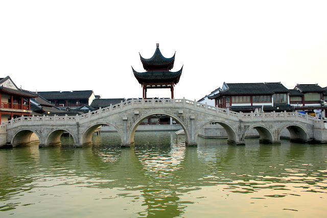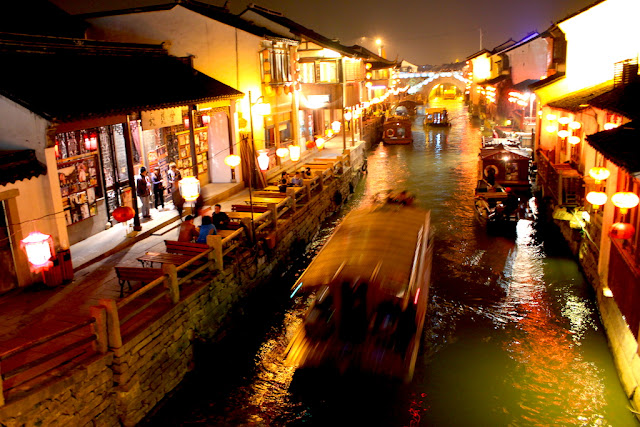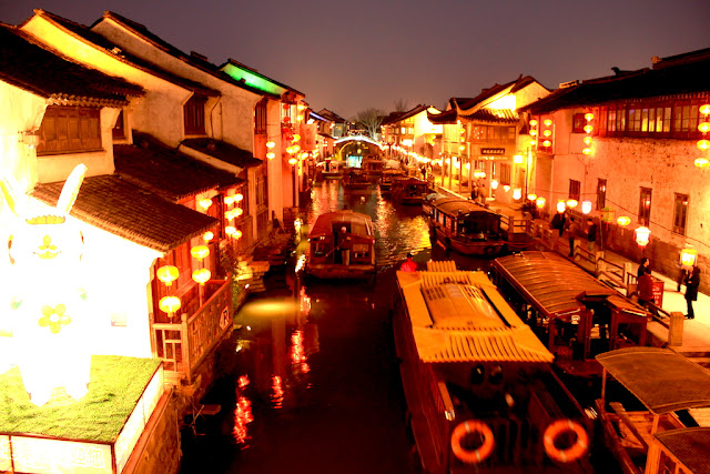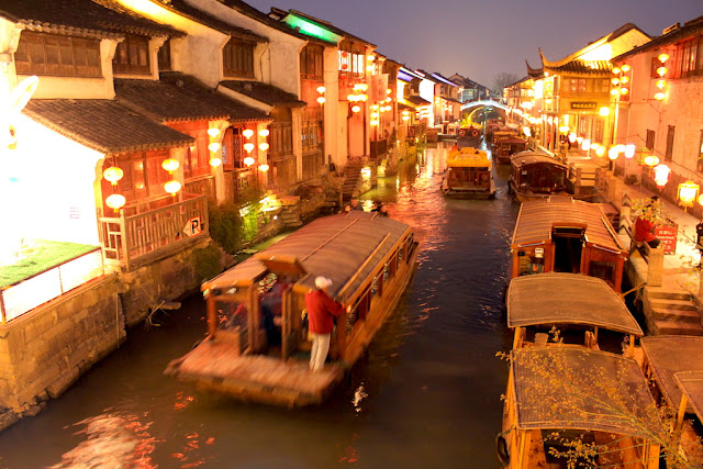 看著小孩天真無邪,在橋上追逐。看著河埠石級上,搗衣洗菜的滄桑老女人。看著石欄上閒暇的老男人,喝茶聊天。看著河上的烏篷船,緩緩劃過。看著夕陽餘暉,豔陽在古城落幕。看著昏暗的天空,映在河中的光,夜晚的水鄉,情景令人屏息。