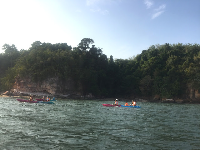 最開心的事情,莫過於泛舟!還以為,簡單的、短程的路線。誰曉得,越划越遠。平靜的海水,變成波動的浪潮。除了雙手疲憊,卻有點小恐懼。彷彿不堪一擊的小舟,加上不協調的划槳。慶幸的,黃昏前,還能抵達目的地。這一切都是值得的。美麗的風景,夕陽餘暉,又是橘色艷陽緩緩離開。參加泛舟,難得可以跟不同國籍的旅客交流。第一次泛舟,卻是如此美好的體驗。