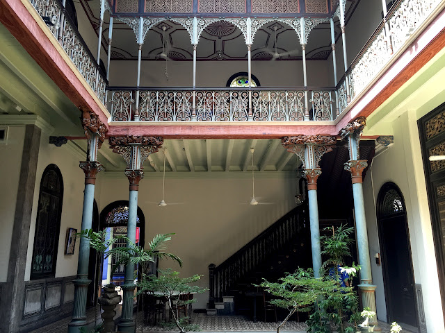 檳城,不,是檳島。在島上,最美的風景,並非四周環海;而是文化遺產。避開週末與公假,那車水馬龍的擁擠、人潮洶湧的喧嘩。總是喜歡,一個人走在島上的文化遺產區,因為喬治市的古韵味,百“聞”不厭。 近這幾年,島上的發展蓬勃、老房子風華再現、文藝與咖啡廳薈萃、名人創意的壁畫。這些事情,把喬治市的名氣,推向國際。 踏上喬治市,徒步探索其中的奧妙。這裡的歷史背景,可以追溯到清末時期,廣為人知的辛亥革命。喬治市的開闢,回到1786年,由弗朗西斯萊特創建。從這兩段歷史來看,喬治市留下的建築物,還真的這世紀難能可貴的遺產。 值得一起的是,“藍屋”。不,宅邸易手後,才後來塗上的藍色。它,原先就像一般中式宅邸。主人張弼士,清末明初的南洋富商,可謂當年檳榔嶼顯赫的企業家。對於這座宅邸,我情有獨鍾。在檳島求學時間,見過它的風華。屢次,也百看不厭。故事、風水、雕塑,就是這座宅邸的奧妙。 張弼士,清末民初時期的南洋富商。煙臺著名的張裕葡萄酒,他就是創辦人。家境貧窮,18歲那年,就冒然下南洋謀生。踏上印尼的國土,靠雜工打拼。千幸萬苦,一路到創辦墾殖公司。在馬來西亞與印尼多地開辦遠洋輪船公司。並在新加坡、雅加達、香港與廣州開設藥行。1893年。張弼士晉身仕途,成為“大清國駐檳城第一任副領事”。當時,他號稱“南洋首富”,資產高達8000萬兩白銀,被美國人稱作中國的“洛克菲勒”。 在印尼棉蘭,也有一座相似的建築物,乃當地赫赫有名的富商張耀軒的宅邸。有所不知,張耀軒即張弼士的侄兒。因曾經相遇,他見過叔叔的豪宅,非常喜歡,所以採用同樣的建築風格。概念特殊,間房的陳列講究設計,以古代中國的風格穿插一些摩登的歐洲風格。豪宅裡的牆上,皆掛著許多字畫真跡,古董花瓶,名人墨寶,還有古董,是值得一遊。 華人傳統的建築風格,多講究風水格與細膩的雕刻。張弼士故居,清代園林的宅邸,外觀壯麗。入院歇山頂的大門“曲江衍浱”。垂脊上的獸像,一般上都會出現在中式的建築物,有吉祥的象徵。木星形的山牆,華麗的雕繪,以碗的碎片雕出中華傳統的神話圖像、花卉圖案等。 值得一提的是,宅邸的裝飾,都以碗的碎片雕塑出,栩栩如繪的圖案。 一座建築物,學會的哲理頗多。由其是從房子裡,各個角落的“文字”開始。無論是宅門院門的對子、還是廳堂的匾額、門楣上的喜字等,含義深淵。雕梁畫棟的風格,絕對是高官富商宅邸的構思。