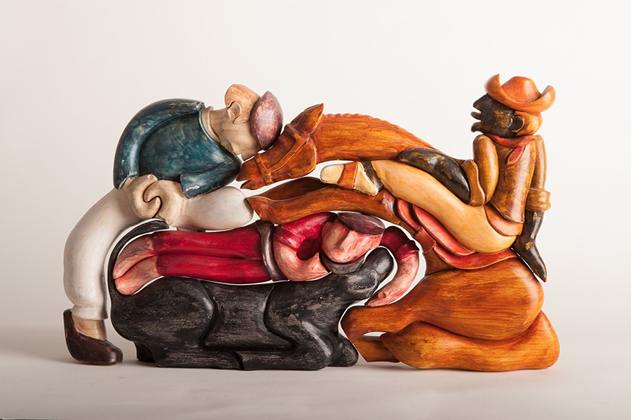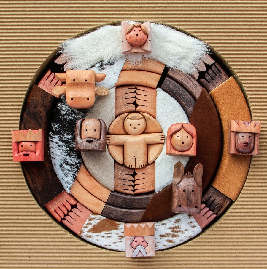 ? 卡洛斯·克拉維利(Carlos Clavelli)是一個來自烏拉圭的可愛老爺爺,他做小型木刻雕塑設計已經有35個年頭了。2014年,他被聯合國教科文組織世界理事會賦予「最具造型經驗的人才」稱號。儘管卡洛斯已經60歲了,但他每天都要工作8到9個小時,幾乎所有的作品都由他手工完成。此次卡洛斯應PACC(上海公共藝術協同創新中心)的邀請來到中國,教授烏拉圭木刻藝術。在拍攝過程中,卡洛斯只要逮到機會就會去磨幾下木頭,打幾個小洞……卡洛斯的設計關註拉普拉塔河流域的文化,拉普拉塔河是南美第二大河,流經的土地十分肥沃,成群的牛羊是常見的風景。加之當地人也經常用動物來給朋友取外號,於是動物便成了卡洛斯作品中的主角。在他的作品中人與人、人與動物之間通常保持著一種非常親密的關係,恬靜又治愈。 最初卡洛斯跟隨他父親的腳步專門設計給孩子們玩的玩具,後來他的設計主題越來越寬泛,蘊含了文化層面的涵義,因此也深得成年人的喜愛。當地大部分人信奉天主教,農牧業發達。圖中的孩子被層層保護,整個作品洋溢著溫情和感恩的情緒。 這隻小羊的用材是卡洛斯最常用的材質——天然羊毛和木頭, 「這兩種材料結合起來效果會非常好,因為它們都很溫暖,而且人工痕跡很少。 」 「牛總是一個一個緊挨著,所以看上去就像是一座牛身組成的長城。它們本性充滿好奇,當你站過去時,所有的牛都會轉過頭來看你。 」 設計木雕非常重要的一步就是簡化造型,去除所有的細枝末節,只留下一個最概括的形狀,比如一群羊就可以簡化成一個有頭有腳的球。 卡洛斯並不喜歡用釘子將作品的各個部件釘在一起,他的絕大部分作品都是可以拆卸拼裝的。如果一個作品比較複雜,則可以通過不同的組裝拆分出多個作品。 蒙得維的亞(烏拉圭首都)是探戈舞的起源地之一。卡洛斯巧妙地將樂隊和探戈舞者融合在一個畫面中,他們互相獨立,卻又彼此契合。 作品《回家》表現的是烏拉圭內陸地區的人,在大城市工作學習一段時間之後趕回故鄉的場景。卡洛斯用烏拉圭本地的動物來展現不同的人物,這三隻形態各異的動物分別是:鳳頭麥雞,凱門鱷和狐狸。其中的鳳頭麥雞還是烏拉圭國家橄欖球隊的名字。 ? 卡洛斯·克拉維利(Carlos Clavelli),烏拉圭著名木刻藝術家,2014年被聯合國教科文組織世界理事會賦予「最具造型經驗的人才」稱號。 自網路轉載分享 |
