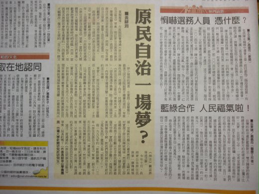 本投書獲刊於11/24中國時報時論廣場,請見《原民自治一場夢?》一文。 中國時報 2007.11.24 貴報報導,行政院院會通過《原住民族自治區法》草案,明訂原住民族得按族別,單獨或聯合設立自治區。表面上,看似原住民族自治新里程碑,然而,空有架構自治法草案,實質上恐怕又是虛晃一招;回顧歷史,政治操作痕跡斑斑可見。 政府並非第一次提出《原住民族自治區法》草案。回顧過去歷史,早在二○○三年,上屆總統選舉前夕,行政院就曾通過《原住民族自治區法》草案,當時各大媒體皆以大篇幅報導,原住民朋友們更滿心歡喜地等著迎接新時代的來臨。然而,當時行政院版本的草案卻飽受民間批評,原因是其將原民會版本規畫的一○四條草案大幅刪改,僅存十五條的「宣示性」條文,缺少細則的規畫,在實踐上窒礙難行,最後又因立法院屆期不續審而退回,草案無疾而終。但過了四年,同樣在大選前夕,《原住民族自治區法》草案再度「上市」,卻是換湯不換藥,除了增修三條條文外,內容幾乎通通沒變,依舊僅空有漂亮的宣示架構。 事實上,原住民族自治區法草案立意雖佳,但若要實行除尚需要相關政策、子法,甚至是法治教育等大環境的配套。 以司馬庫斯櫸木案為例,縱使原住民基本法已通過,且森林法已規定原住民得依其生活慣習採集森林產物,但今年九月底二審宣判,三位泰雅族人卻仍各判三個月、併科罰金各七萬九四八八元;今年五月間屏東縣獅子鄉雙流部落的排灣族原住民在其傳統領域採食燒酒螺,也被林務局以《刑法》竊盜罪移送法辦。 今年十月,政府更公告原住民族第一個傳統領域,宣稱新竹縣尖石鄉秀巒村、玉峰村兩村實現了原住民傳統領域,然而實際上卻是藉由公告限縮了原民權利,矮化原住民。這些例子在在顯示若干原民相關法律都僅有空殼,實踐上卻步步難行,而類似的案例層出不窮,教我們如何期待這次政府又是玩真的?還是又是「狼來了」? 從一九九九年的「新夥伴關係」、○三年《原住民族自治區法》草案,到今年十月公告的原住民「傳統領域」,實際上都是空有架構的政策支票。然而支票一再跳票,不但消費了原住民的誠意與期待,最後,只會讓人看破手腳,而台灣一再強調的多元文化肯認價值恐怕也只是幻影。 這次二度通過的《原住民族自治區法》草案,玩真的嗎?(作者為耕莘山學團團員、台灣大學新聞研究所研究生) |