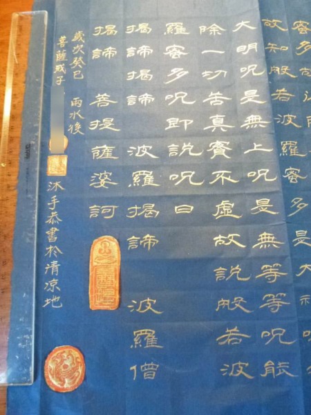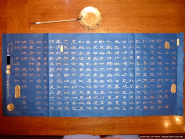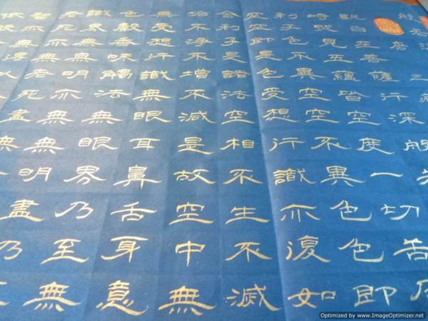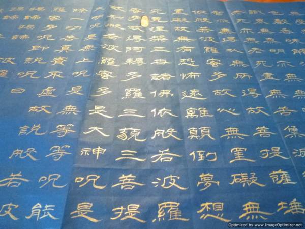 昨晚寫了一張書法心經 這是為一位網友寫的 拿出來曬一下 這張書法的難度在於 它的筆劃從頭到尾都一樣粗細 我不是用抄經筆寫的 我是用一般小楷筆寫的 這小楷筆筆毛長近兩厘米 而我只用其尖端的1-2毫米來寫 也就是說 手沒拿穩了抖了一下 或呼吸重一點 或就是手用的力多一點或少一點時 會讓字的筆畫粗細不一樣 這張書法就完了要重寫 這是練專心的一種方法 我特別照了一張側看這張書法的圖片 當字不再像個字的時候 你看到的就是一堆線條 隸書體側看的線條特別美 這是其他字體所沒有的特點 勸告各位 不管工作有多忙 你最好在在年輕的時候就培養出一種可以一個人做 不太花錢 不太花力氣 又可以自娛的嗜好 我以為我爸媽會打麻將打到死 我錯了 他們還沒多老就已經打不動麻將了 譬如 琴棋書畫就都是不錯的嗜好 你可能要說 下棋要對奕才行 要兩個人 如果你人在國內 隨時可以去公園裡找人下棋 但真正厲害的人 都是一個人拿著棋譜研究棋路的 如果對手水準不夠 與人下棋是很累的事! 我怎麼知道? 因為我也下棋所以我知道 培養一種終身嗜好很重要 你以為你老了還會上網跟年輕妹子flirting嗎? 真沒那力氣 看看我的書法 落了款 蓋了章 我塗掉的部份是我的名字 獻醜了