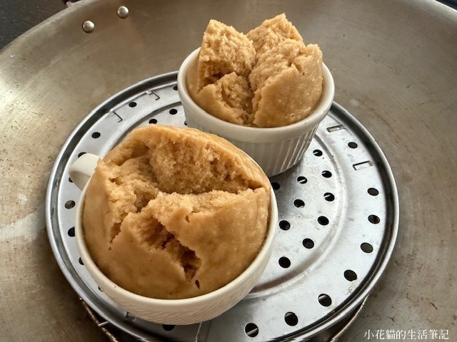 最後就是乖乖地用低筋麵粉然後用以前我媽硬要我從台灣扛過來的炒菜鍋用三飯碗的水先煮到大熱蒸氣大冒後才把黑糖麵糊放下去大火蒸最少15分鐘(我蒸了20分鐘)然後不打開續悶5分鐘