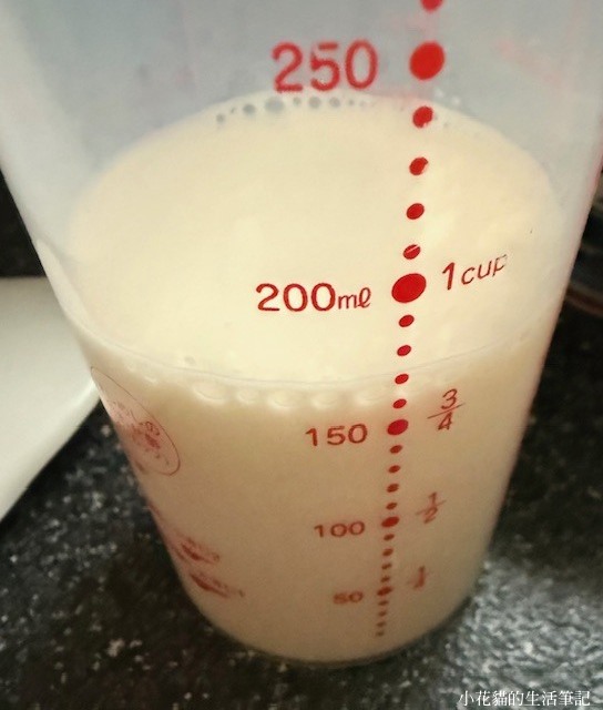 但搞怪的我在2)部分牛奶我沒弄到200毫升(1米杯)因為我要放50毫克的椰奶增香