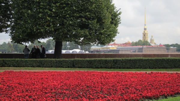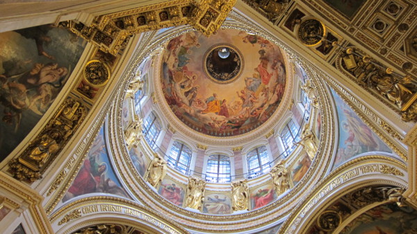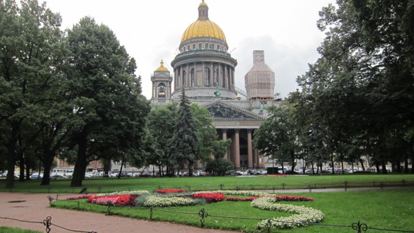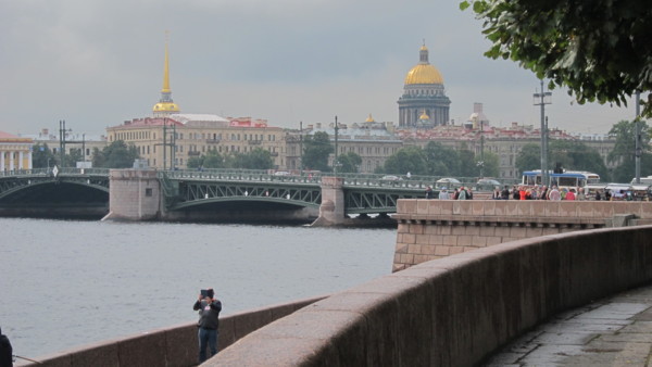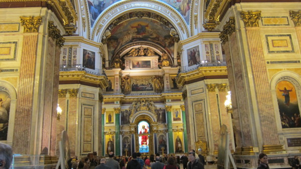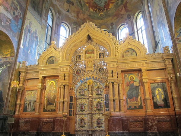 雄偉壯觀的聖以薩克教堂,有個大金頂,重要的儀式都在此舉行,最早就有彼得大帝和第二任妻子(後來的凱薩琳一世)就在此結婚。內部裝潢是由各地運來有色礦石,拼貼及彫刻成牆面及聖像屏等。聖彼得堡因隣近海洋,所以裝飾多以馬賽克拼貼,以免壁畫剝落。 聖以薩克教堂 4403 車子過橋到了瓦西里島,到達島上最尖端岬角的船頭堡,兩根紅色的燈塔圓柱,歷史久遠,是1810年與對面的證券交易所同期建造。此地還可隔涅瓦河遠眺冬宮,聖以薩克教堂,與彼得保罹要塞的高聳尖塔。這幾天看到多對新人在各處照相,可能因為週五,結婚的人較多。 船頭堡 結婚的新人 遠眺聖以薩克教堂 彼得保羅要塞的高聳尖塔 再回到市中心到滴血教堂,這座教堂的外觀搶眼,多次經過周邊遇到堵車,在車上攝取不少遠景,今天正式參觀。亞歷山大二世因施行改革,1881年在此遭反抗分子以炸彈刺殺而死,他的兒子亞歷山大三世為紀念此一事件而興建此教堂。大教堂有五個醒目的圓頂,樣式繁複,內部地板牆面的馬賽克拼花細緻,多樣,更令人讚嘆。 遠眺滴血教堂 滴血教堂 亞歷山大二世被刺地點 聖像屏 步行到藝術廣場,有普希金彫像,有興趣的人,對面有購物中心可採購俄羅斯娃娃等工藝品。此地距離涅瓦大街只有約50m,多次乘車經過,今天趁此空檔親自去逛一逛,最後體會一下聖彼得堡涅瓦大街的氣氛. 藝術廣場普希金彫像 閒逛涅瓦大街 往機場途中的中式餐廳吃中餐,已經約兩點半,吃完午餐直接到機場辦手續,與聖彼得堡及當地可愛的導遊凱薩琳說拜拜了。 |