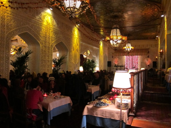 教堂廣場四周的聖母升天大教堂,大天使教堂,聖母領報大教堂,伊凡大鐘樓,及主教宮12使徙教堂。前三個教堂都進入參觀,這些教堂在蘇聯時期都改為博物館,所以壁畫及聖像屏仍保持良好。當然聖母升天大教堂是最重要的教堂,大天使教堂是墓陵,聖母報領大教堂則屬沙皇家庭教堂。 聖母升天大教堂 聖母領報大教堂 伊凡大鐘樓 步出克里姆林前看到一直昇機停機坪,此為普丁總理的上下班交通工具。來到亞歷山大公園,恰好遇到.無名戰士墓前衛兵換崗,聚了許多人,但儀式非常簡單,這讓我想起每次在中正紀念堂觀光客觀看衛兵換崗的情景,完全一樣。 無名戰士墓 晚上吃烏茲別克烤肉串,麵包像烤餅似的,非常好吃,肉串有雞肉和羊肉,搭配香菜別有風味,旁邊長桌上擺放各種水果及甜品,我們的甜點也是其中的三樣,再搭配烏茲別克茶,整個氣氛非常不一樣。這是莫斯科最後一餐,明天即將往金環遊覽。 烏茲別克烤肉餐廳 回到旅館,天氣不佳,所以到隔壁的一間超市逛逛,買些乾果點心。一般民生必須品不比台北貴,但其他就難說了,譬如大牛角可頌約80盧布(美元1元約35盧布),約合台幣70元。