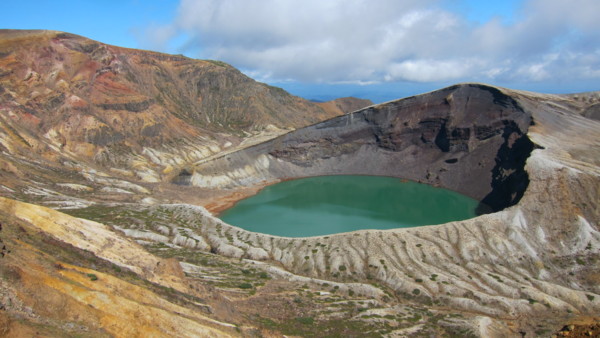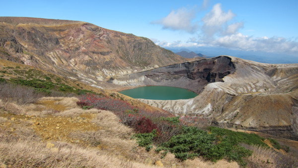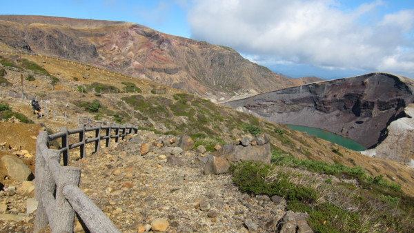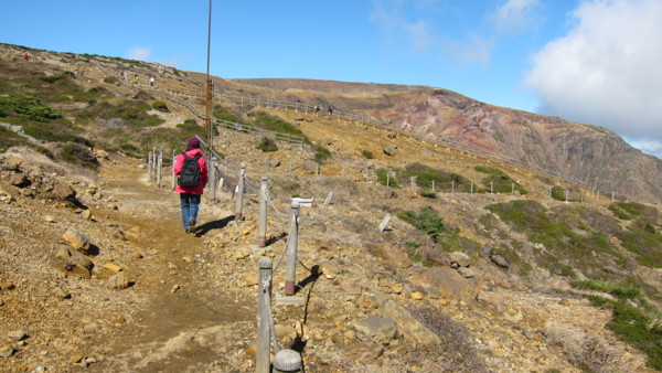 今天從山形站前搭巴士,直通藏王山的山頂-藏王刈田山頂,通常只在夏秋之際,一天來回一班車。藏王山頂當然沒什麼紅葉可看,主要是為了火山湖-お釜。火山湖直徑約330m,深度27.6m,水色會因天氣及時間而改變。 回程在藏王溫泉下車,在藏王溫泉大露天風呂入浴,露天風呂是沿溪流開發的露天風呂,如果紅葉更盛的話,風情更佳。藏王溫泉也是冬季滑雪勝地及觀賞樹冰的最佳場所。 竹籬笆內側即為浴場 冬季滑雪道 搭巴士約50分鐘回到山形市區。 |
