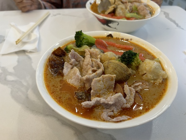 純休息,直到傍晚,找到吳番婆沙茶麵(金榜店),就購買雙人套餐50元嘗試廈門有名的沙茶麵,沙茶的味道特別香。