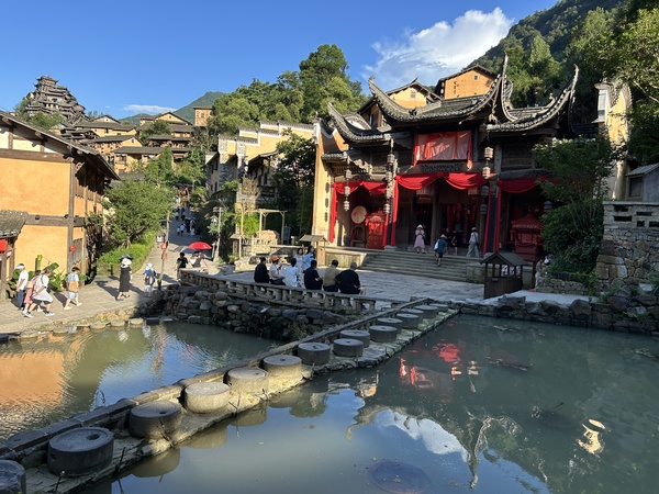 望仙谷座落於山谷中,依山而建的懸崖民宿,有Z字型台階可以登高,建築以燈光裝飾,據說夜景非常可觀,吸引可觀的遊客。