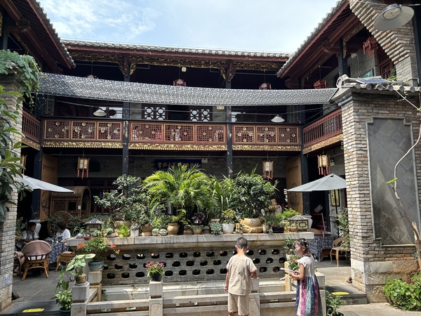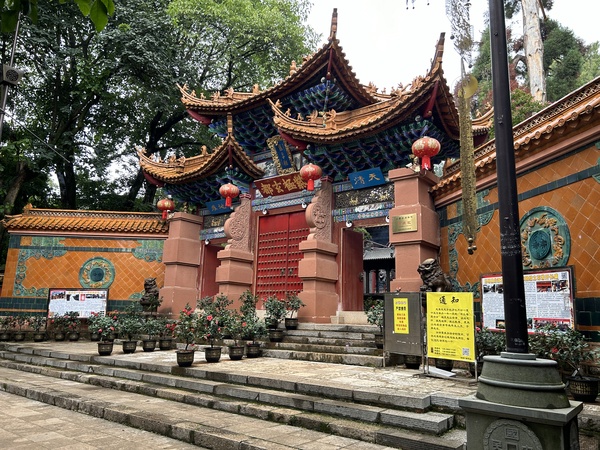 進園,右邊就是龍潭,有賣小食飲料,可以休息一下。往後面爬個小樓梯到龍泉觀。是滇中第一古祠,集唐梅、宋柏、元衫、明茶等古木,有三進,比普通的道觀精緻。