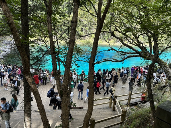 到五彩池,向下繼續前行,看完五彩池,不走回頭路,就到往諾日朗中心的乘車站。