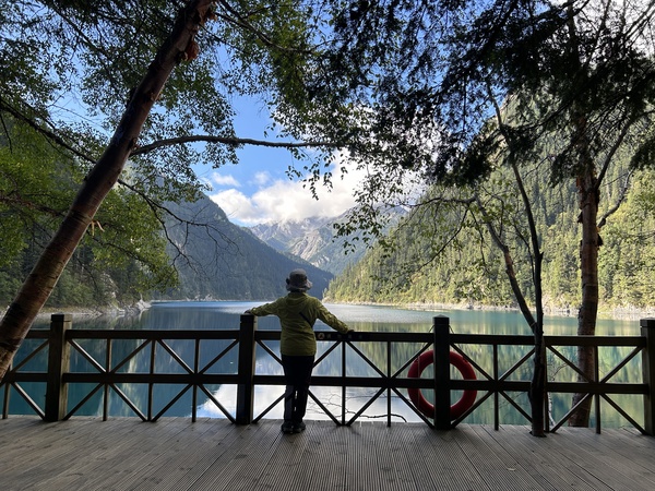 長海,下車後是觀景平台,從面海的右手向下到長海邊的棧道,向左走完棧道,才能看盡長海的美景。棧道向上往五彩池方向前進。