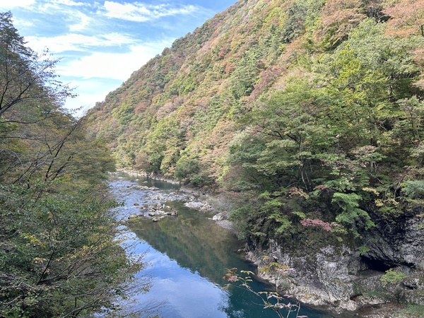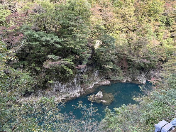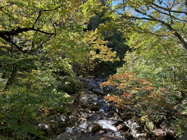 沿著溪谷往回顧の滝,來回大約一個半小時。抱返リ溪谷的紅葉只是稍微轉黃,時間應該是比奧入瀨溪流還要遲。