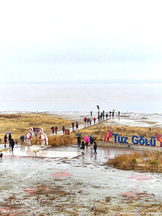 圖茲湖在春夏時水位比較高,可以看到粉紅色湖水和天空之鏡景色。在夏秋的時候水位比較低,雪白的鹽地會露出來,像雪地一樣的景色也是非常特別。我們是在12月31日到此,當時下著小雪,因此看不到天空之鏡的水面倒影。