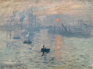 畢沙羅自1884年起,即住在巴黎郊區的伊拉格尼(Eragny)。他起初租屋,後來總算擁有自己的房子與一座美麗的花園。他在此畫了許多畫,也一直住到1903年安詳辭世。 他於1898年畫的〈伊拉格尼的花園〉,是一幅描繪在燦爛陽光下,花園裡的花木欣欣向榮以及園丁們辛勤工作的情景,帶給人綠意盎然的感覺。 畢沙羅,〈Eragny花園〉,1898,華府國家藝術館館藏,楊遠薰攝影 1886年,在印象派的最後一次聯展中,小畢沙羅將近三十歲的秀拉 (Seurat)展出一幅〈大碗島的星期日下午〉,讓畢沙羅大為驚艷。 他此後暫時放下豪邁的揮毫方式,改與秀拉從事結構嚴謹的點描法 (Pointillism)。這段合作促成新印象派 (Neo-Impressionism) 的崛起,也為藝壇添增前輩提攜後輩的佳話。 3 莫內 (Claude Monet,1840-1926) 無疑地,莫內是印象派的靈魂,印象派亦因為他的一幅〈印象.日出〉的畫而得名。 莫內於1840年出生在法國的諾曼第(Normandy),16歲時受到海洋畫家布丹( Eugene Boudin)的提攜,開始做戶外寫生。 1862年,他進瑞士 (Suisse)美術學院,師從格萊爾 (Gleyre),與雷諾瓦 (Pierre Renoir) 、巴齊耶 (Bazille)和西斯里 (Sisley) 同學,彼此結成好友。 1873年,莫內提議成立「無名畫家、雕塑家、版畫家協會」,獲得雷諾瓦、巴齊耶、西斯里、畢沙羅和德加 (Edgar Degas) 等人的響應。 1874年,他們在巴黎舉辦第一次畫展。莫內展出一幅〈印象.日出〉的畫,被畫評家Louis Leroy謔稱為「印象派」。結果等畫展結束,這些畫家們都被稱為印象派畫家。 Claude Monet的〈印象 日出〉,2024年9月在華府展出,楊遠薰攝影