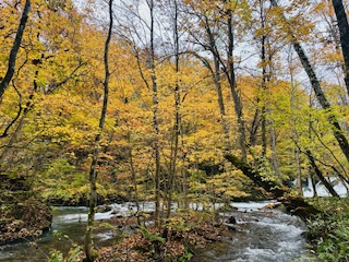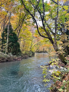 奧入瀨溪流,楊遠薰攝影 迷人的奧入瀨溪流 楊遠薰 初次探訪奧入瀨 (Oirase)溪流,見景致如詩似畫,不禁在心裡讚嘆:「世間怎會有這麼美的河流!」 時為2008年,因為隨團旅行,僅在那兒停留兩小時,頗感意猶未盡,因此盼望日後能有機會重遊。 歲月悠悠,一晃過了十七年。今秋因為探訪日本東北的仙台,乃趁機北上青森(Aomori),前往奧入瀨溪流,在那兒小住兩天,一償夙願。