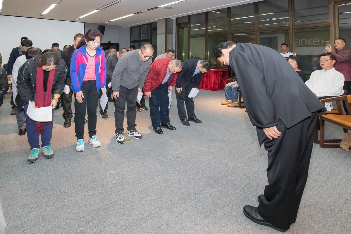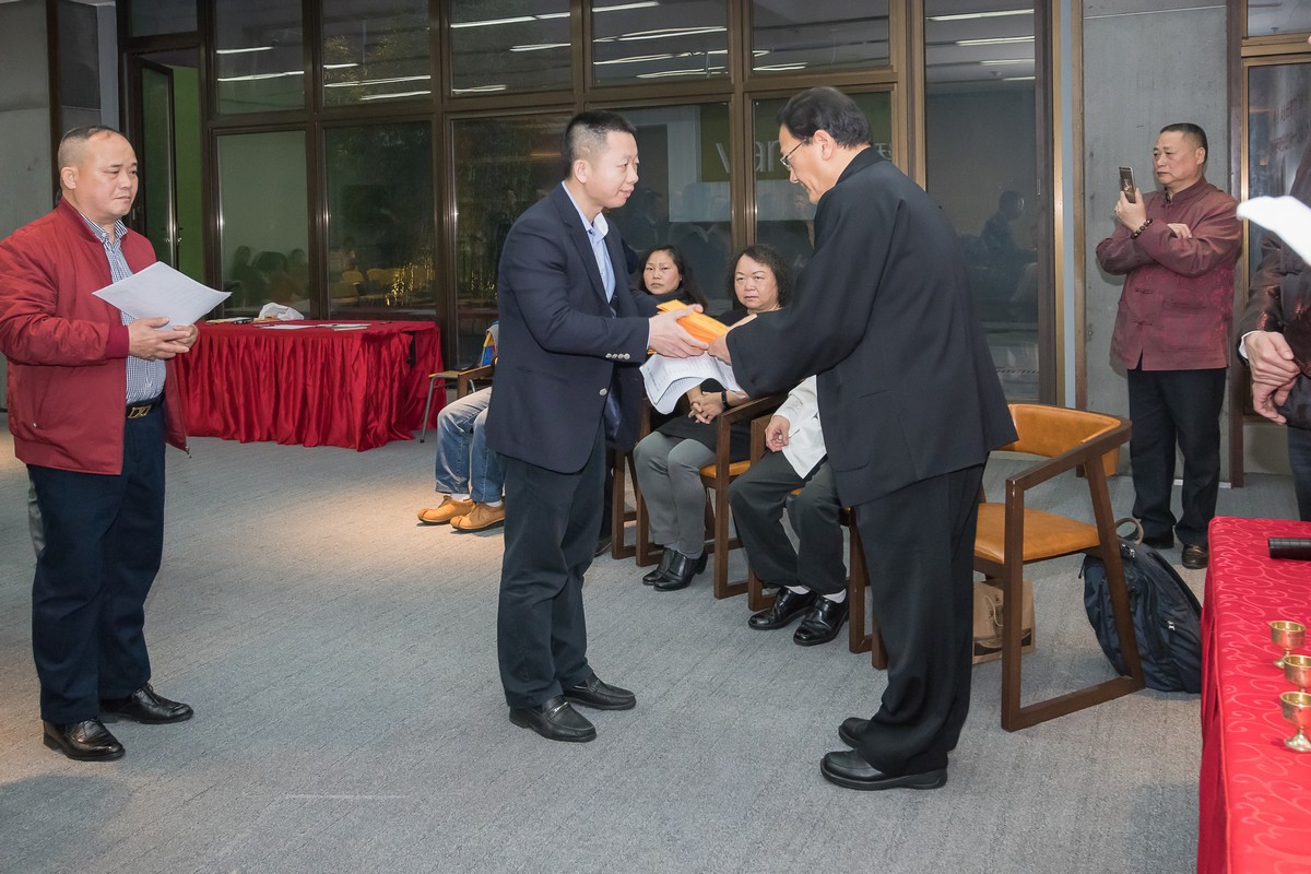 有緣拳社第二十六期入室弟子向謝昭隆師父行三鞠躬禮