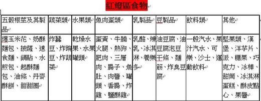 食物紅、黃、綠燈