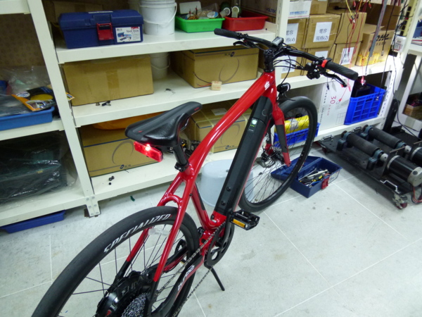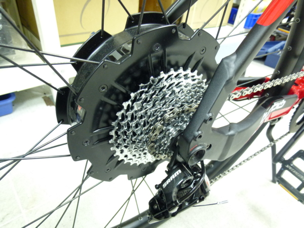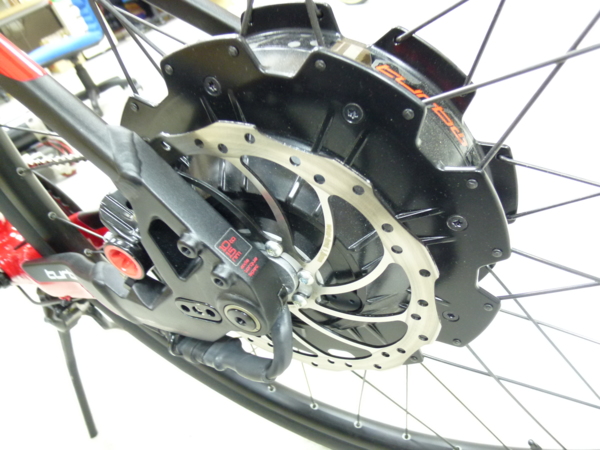 先說一下這台車的歷史, 從2009年開始Specialized 瑞士的開發部門便與Go SwissDrive協同開發此一專案. 首次上市時間為2012年四月, 在市面上已經超過一年半的時間了, 回到正題. 這個專案可視為Specialized設計車輛平台並由Go SwissDrive提供系統整合與電力套件的部分. 這台車映入眼簾後的第一個感受是:除了後輪鼓比較大以外, 幾乎看不見多餘的電子部件與線材, 我想第一需歸功於Go SwissDrive所提供的All-in-one motor. 後輪鼓馬達成功地將馬達/控制器/扭力感測器整合到輪鼓之中, 車身顏色則以Specialized紅搭配黑色為主體, 也成功營造了一種熱血騎乘的氛圍. 車輛本身乍看之下比較像是MTB的幾何與配置, 但其實為了能夠達到45km/h的極速, 我認何這台車是恰如其分的提供合理與安全的騎程與操控性. 首先先說明AIO馬達, 雖然馬達殼上的貼紙描述250W, 但實際上此馬達為額定500W馬達, 車輛可以遊刃有餘的爬坡與加速到極速. 馬達上已經內含了9/10sp cassette body, 也讓齒比的範圍變大. 以大齒盤48T對上11T提供高速時不致空踏, 而48T/36T的齒比能夠在有馬達助力的情況下輕鬆上坡. 此馬達是直流無刷馬達, 在騎乘時除了棘輪聲外幾乎聽不見馬達的激磁聲音, 並不會像中國製的齒輪馬達一樣, 於鄉間騎乘時(無環境噪音, 僅有蟲鳴鳥叫與風聲), 騎乘者本身是不會聽到多餘的雜音. 由馬達的細部照片中也可以看出此達已經具備有12mm的快拆心軸(thru axle), 目前僅有歐洲設計製造的馬達上才有, 我想AIO馬達的重量較重的關係才會採用此設計. 隨之而來的是換輪胎時的便利性也會增加. 控制器與扭力傳感器已經內建於馬達中, 在試騎心得中再來分享.