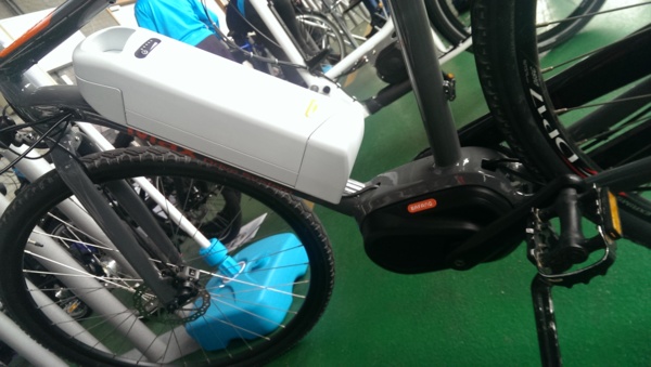 同盛中置系統 (中國馬達廠) 無意中在業界的攤位上看到同盛"寄放"一台樣品車, 詢問之下是該公司產品, 一直以來小編以為同盛僅生產輪鼓齒輪馬達, 想不到今年展覽已經看到中置系統的產出. 先說優點, 與八方第一代同樣的概念, 小尺寸馬達且不須修改傳統車架是最大的優勢. 以騎乘趕來說, 好像是剛踏入這個產業的公司所開發的產品. 且沒有目前流行的拇指按鈕. 例如助力模式調整是放在儀表上.
